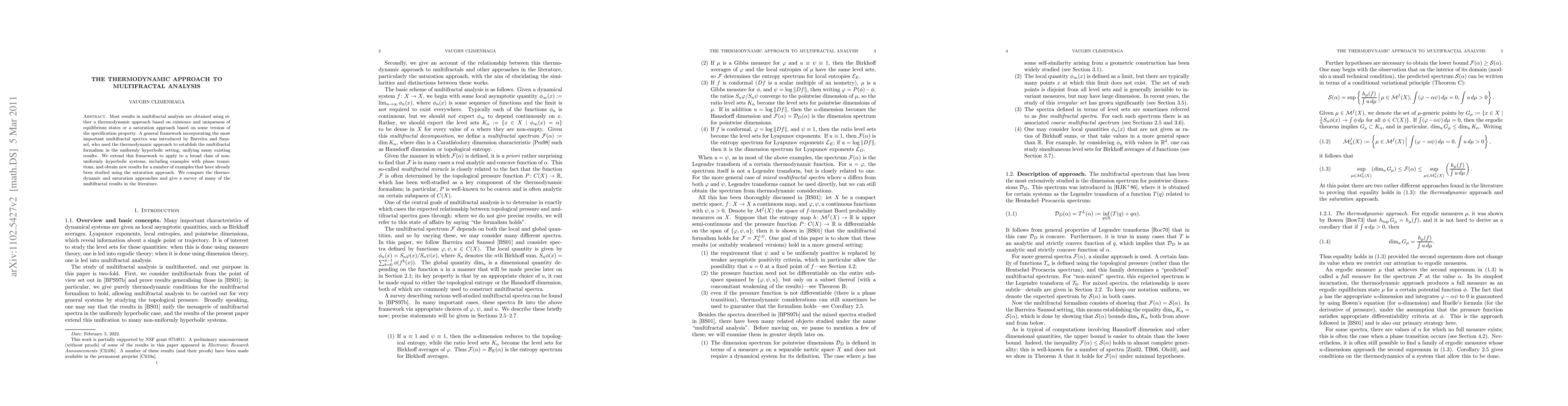 This paper extends the thermodynamic approach to multifractal analysis for non-uniformly hyperbolic systems, comparing it with the saturation approach and surveying existing multifractal results. The authors unify and generalize previous findings in a broad framework applicable to systems with phase transitions.