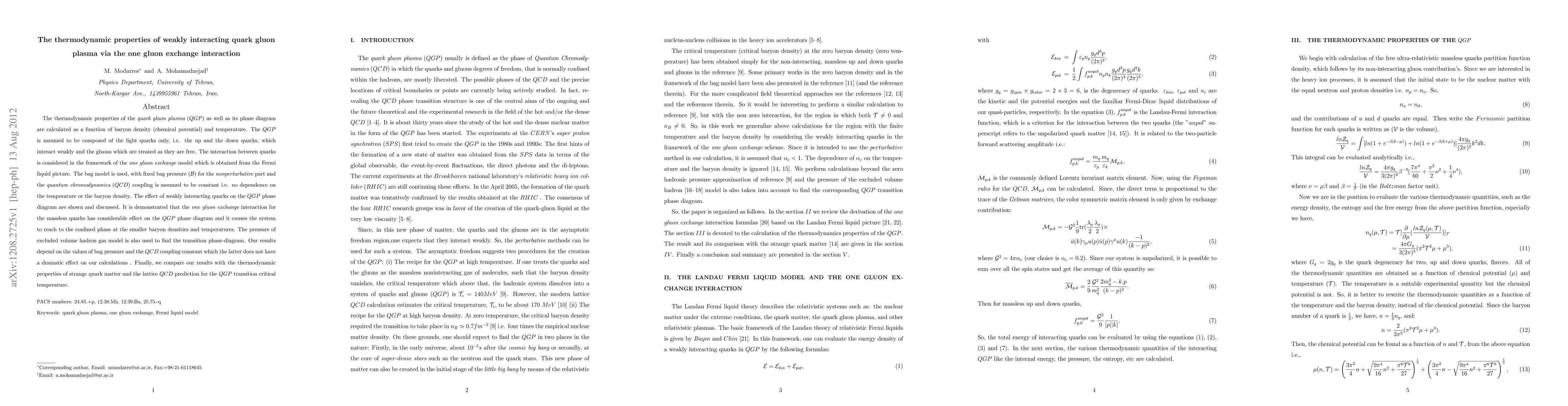 This study investigates the thermodynamic properties of a quark gluon plasma, calculating its phase diagram as a function of baryon density and temperature. The results show that weakly interacting quarks significantly affect the plasma's phase transition to confinement at lower densities and temperatures.