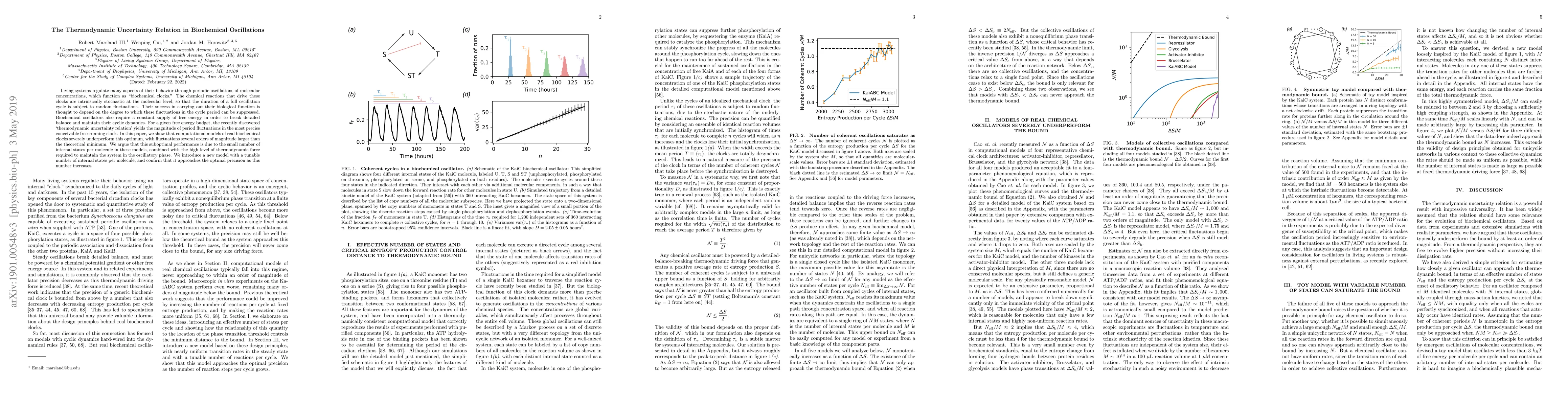 Living systems regulate many aspects of their behavior through periodic oscillations of molecular concentrations, which function as `biochemical clocks.' These clocks are intrinsically subject to thermal fluctuations, so that the duration of a full oscillation cycle is random. Their success in carrying out their biological function is thought to depend on the degree to which these fluctuations in the cycle period can be suppressed. Biochemical oscillators also require a constant supply of free energy in order to break detailed balance and maintain their cyclic dynamics. For a given free energy budget, the recently discovered `thermodynamic uncertainty relation' yields the magnitude of period fluctuations in the most precise conceivable free-running clock. In this paper, we show that computational models of real biochemical clocks severely underperform this optimum, with fluctuations several orders of magnitude larger than the theoretical minimum. We argue that this suboptimal performance is due to the small number of internal states per molecule in these models, combined with the high level of thermodynamic force required to maintain the system in the oscillatory phase. We introduce a new model with a tunable number of internal states per molecule, and confirm that it approaches the optimal precision as this number increases.