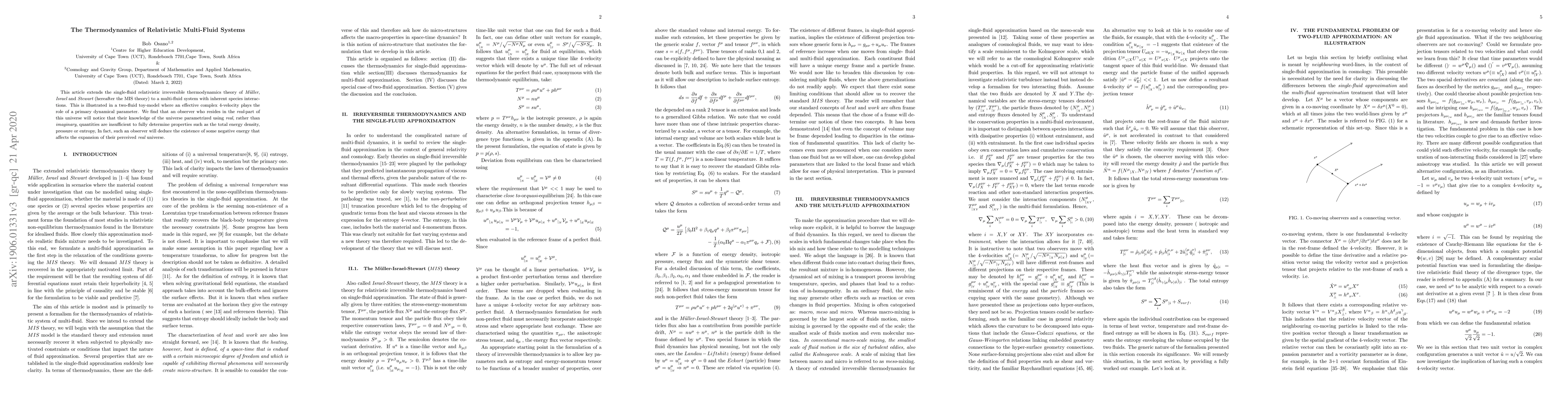 This paper extends the MIS theory to relativistic multi-fluid systems, revealing that real-universe observers lack sufficient information to fully determine energy density, pressure, or entropy due to negative energy effects, highlighting the complexity of multi-fluid interactions.