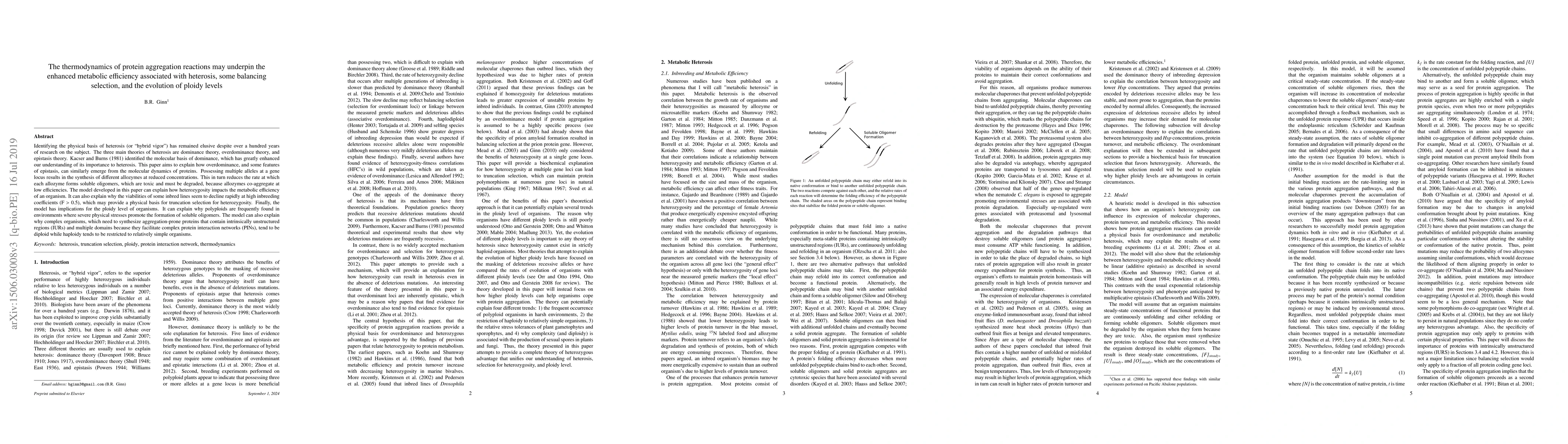 This paper proposes a novel explanation for heterosis, suggesting it arises from protein aggregation thermodynamics. Heterozygosity reduces toxic oligomer formation, enhancing metabolic efficiency. The model also explains inbreeding depression, truncation selection, and the prevalence of polyploidy in stressful environments, linking protein complexity to organism ploidy levels.