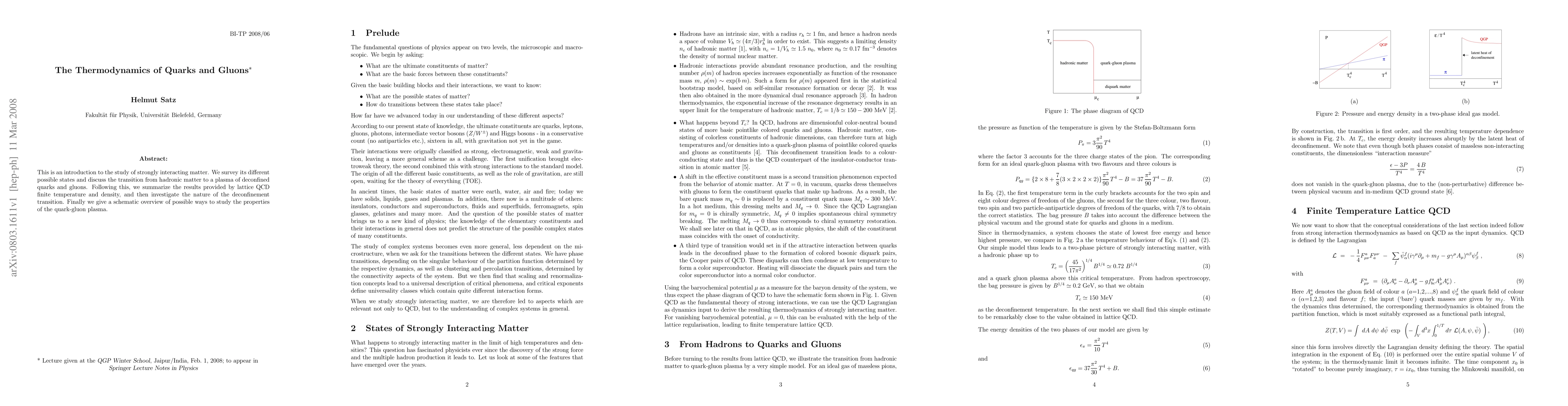 This paper explores the thermodynamics of quarks and gluons, studying their behavior in strongly interacting matter and the transition to a deconfined plasma state. It summarizes key findings from lattice QCD simulations and discusses possible ways to study the properties of this exotic state.