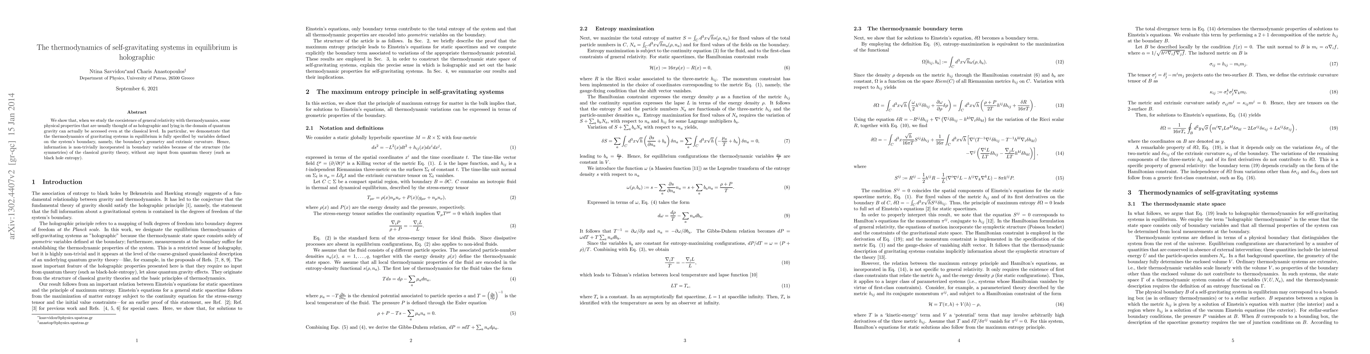 Researchers show that thermodynamics of gravitating systems in equilibrium can be fully described using variables on the system's boundary, not requiring input from quantum theory.