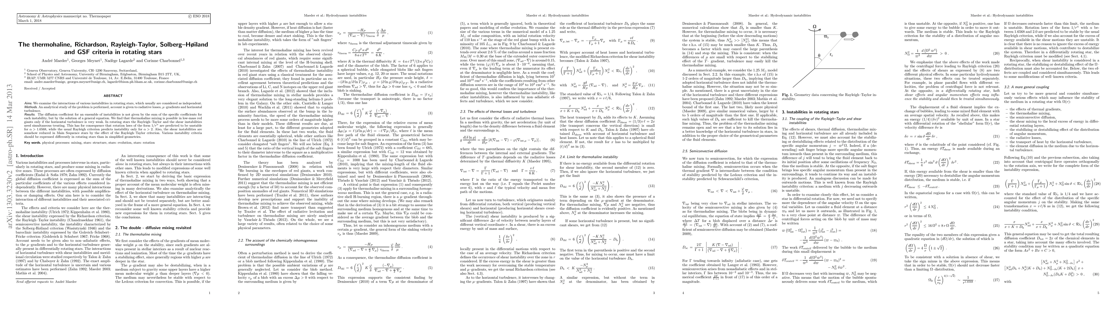 This paper investigates the interplay of various instabilities in rotating stars, finding that the diffusion coefficient is determined by a general equation rather than the sum of individual coefficients. It concludes that thermohaline mixing in low-mass red giants requires minimal horizontal turbulence, and that the combined effects of Rayleigh-Taylor and shear instabilities necessitate a reevaluation of rotation laws and instability criteria in rotating stars.