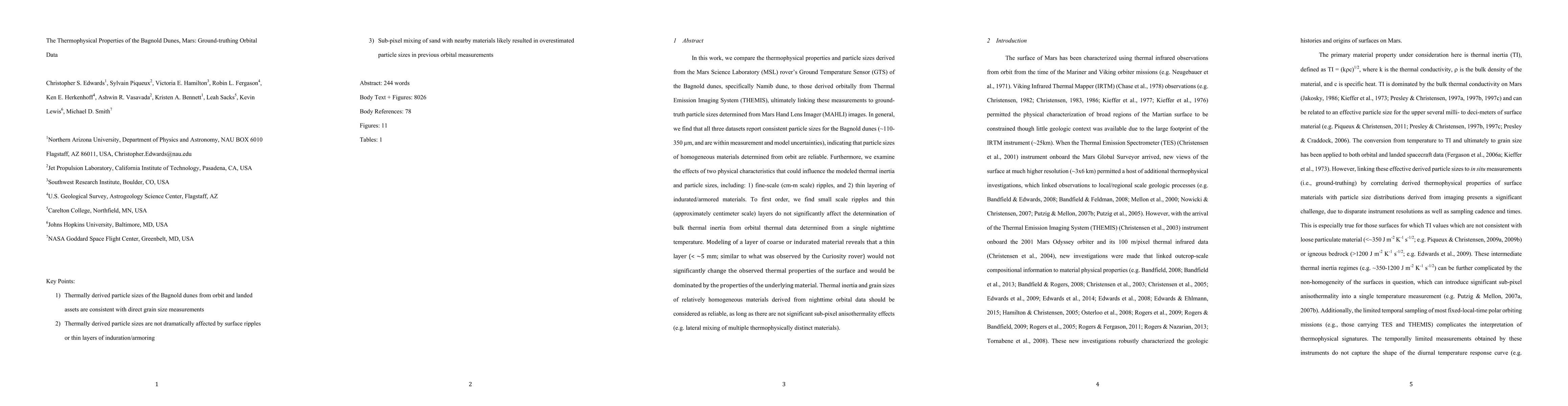 This study confirms that particle sizes of Martian dunes can be reliably determined from orbital data, with consistency across different measurement methods. It also suggests that thin layers on the surface do not significantly affect thermal properties.