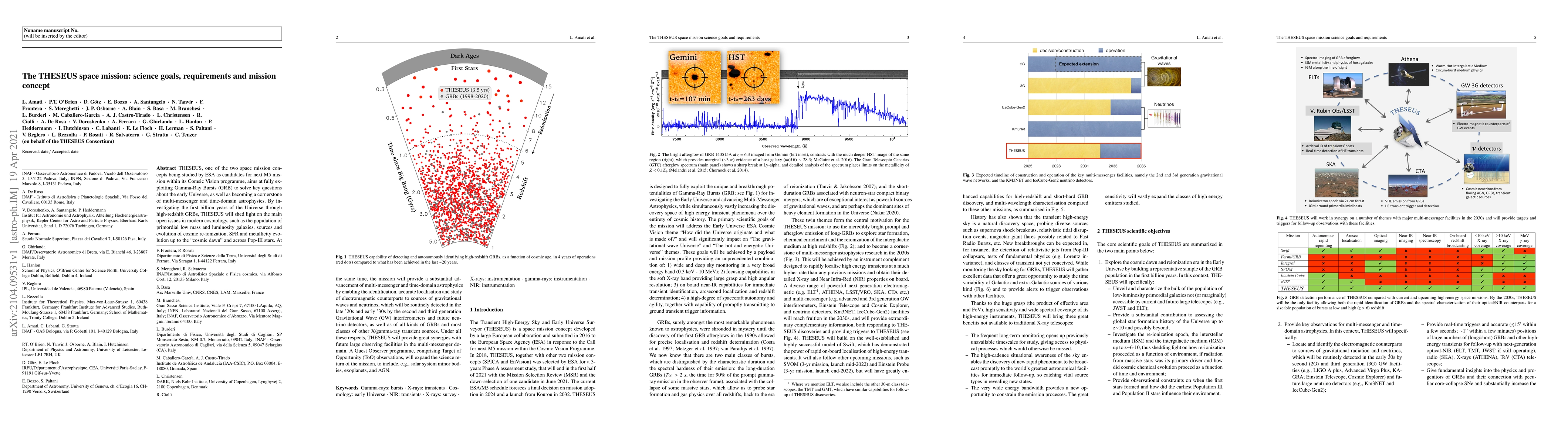 THESEUS, a candidate for ESA's next M5 mission, aims to explore Gamma-Ray Bursts to address key questions about the early Universe, including cosmic re-ionization and the evolution of galaxies. It will also advance multi-messenger astrophysics by localizing sources of gravitational waves and neutrinos.