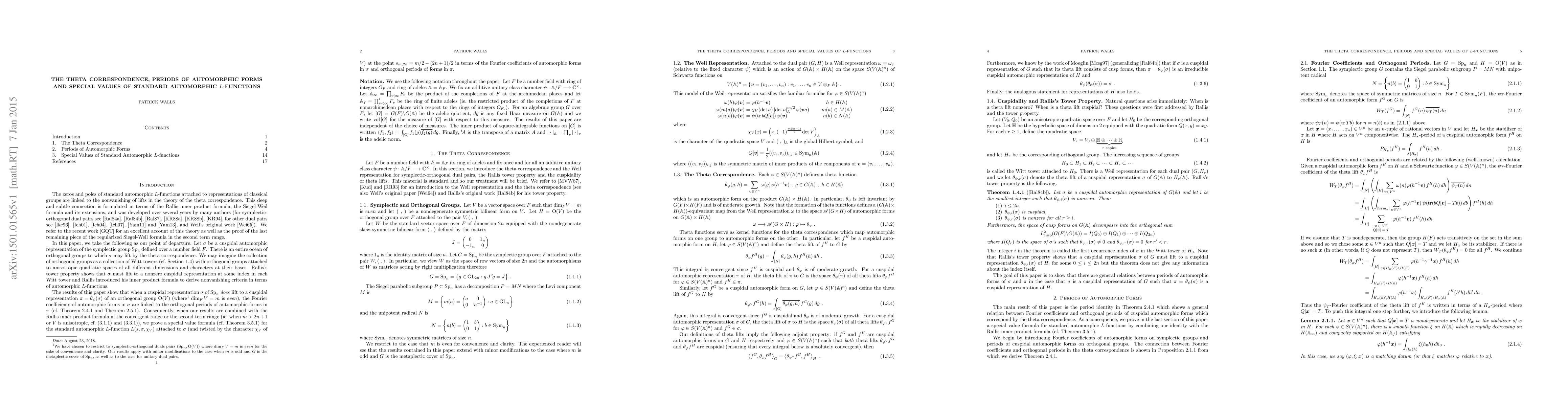 This paper explores the connection between the zeros and poles of standard automorphic L-functions and the nonvanishing of lifts in the theta correspondence. It establishes a link between the Fourier coefficients of cuspidal representations and periods of automorphic forms, ultimately proving a special value formula for the automorphic L-function at a specific point.