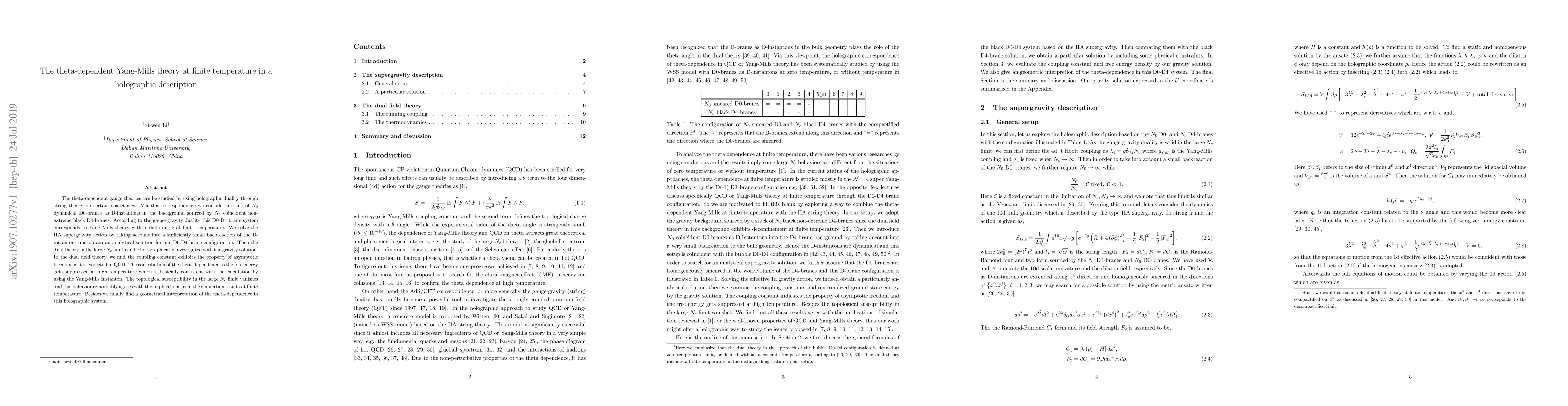 This paper explores theta-dependent Yang-Mills theory at finite temperature using holographic duality via string theory. The study employs a D0-D4 brane configuration in the large $N_c$ limit to derive an analytical solution and finds that the coupling constant exhibits asymptotic freedom, while the theta-dependence's contribution to free energy diminishes at high temperatures.