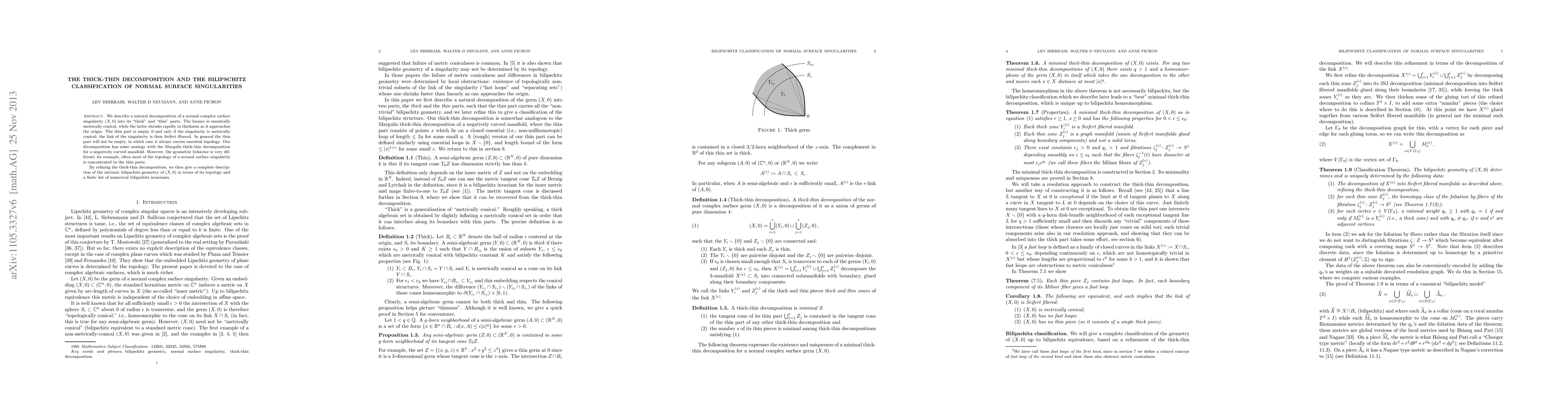 This paper decomposes normal complex surface singularities into "thick" and "thin" parts, with the thin part carrying essential topology. It provides a complete intrinsic bilipschitz classification based on the topology and finite numerical invariants.