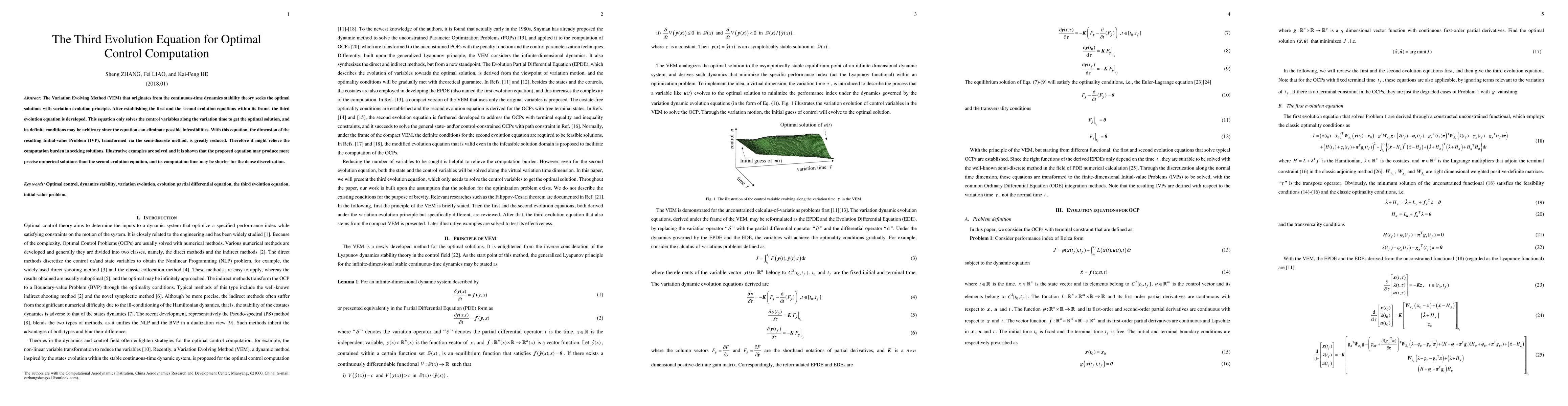The Variation Evolving Method (VEM) that originates from the continuous-time dynamics stability theory seeks the optimal solutions with variation evolution principle. After establishing the first and the second evolution equations within its frame, the third evolution equation is developed. This equation only solves the control variables along the variation time to get the optimal solution, and its definite conditions may be arbitrary since the equation can eliminate possible infeasibilities. With this equation, the dimension of the resulting Initial-value Problem (IVP), transformed via the semi-discrete method, is greatly reduced. Therefore it might relieve the computation burden in seeking solutions. Illustrative examples are solved and it is shown that the proposed equation may produce more precise numerical solutions than the second evolution equation, and its computation time may be shorter for the dense discretization.