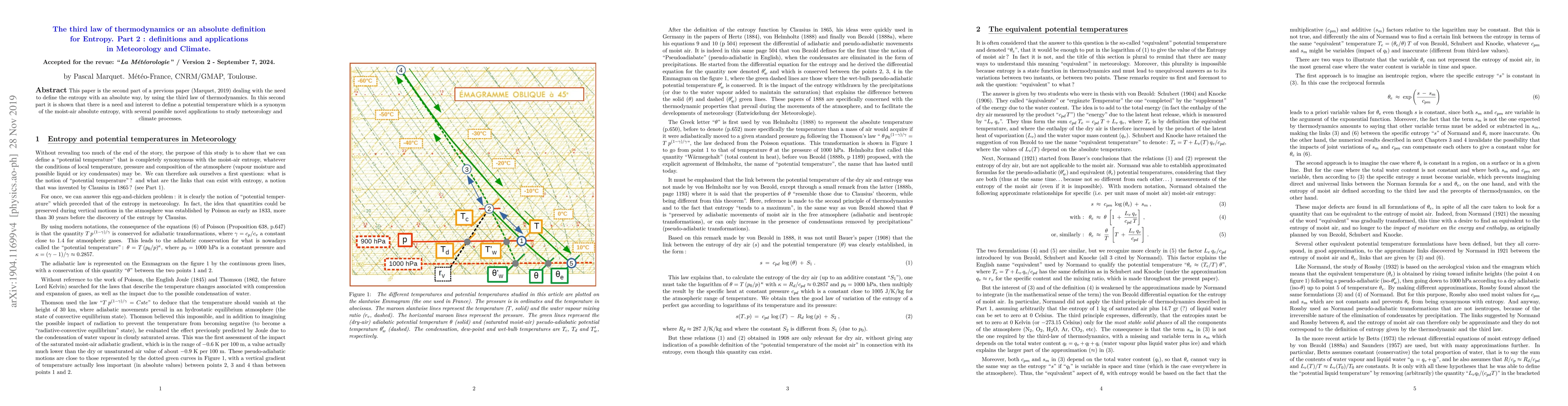This paper builds on previous work to provide an absolute definition of entropy using the third law of thermodynamics, introducing a potential temperature synonymous with moist-air absolute entropy, and exploring its novel applications in meteorology and climate studies.
