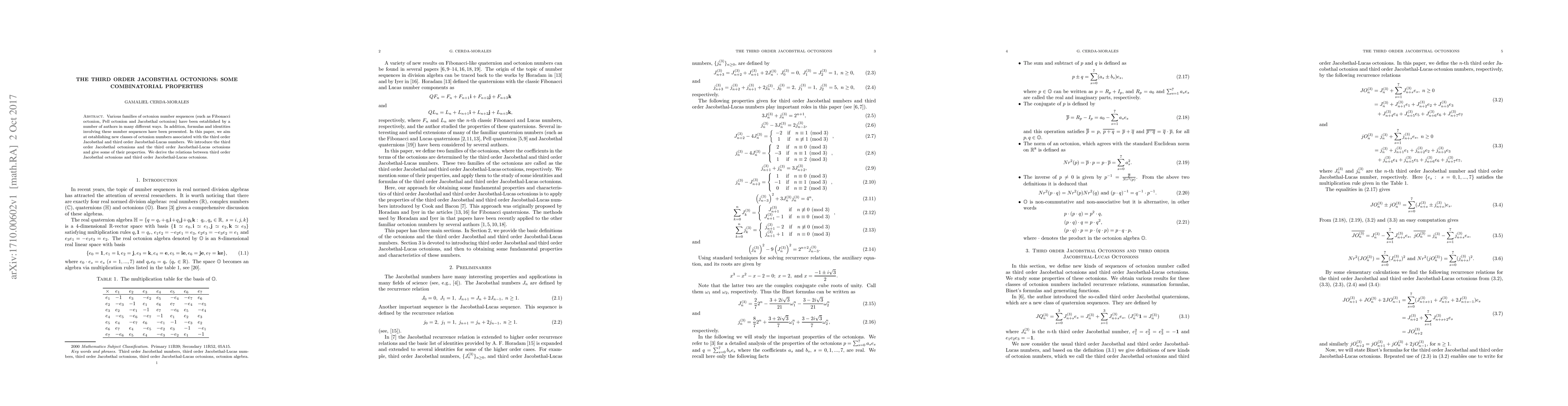 This paper introduces new classes of octonion numbers linked to third order Jacobsthal and third order Jacobsthal-Lucas sequences, exploring their properties and establishing relations between these newly defined octonions.