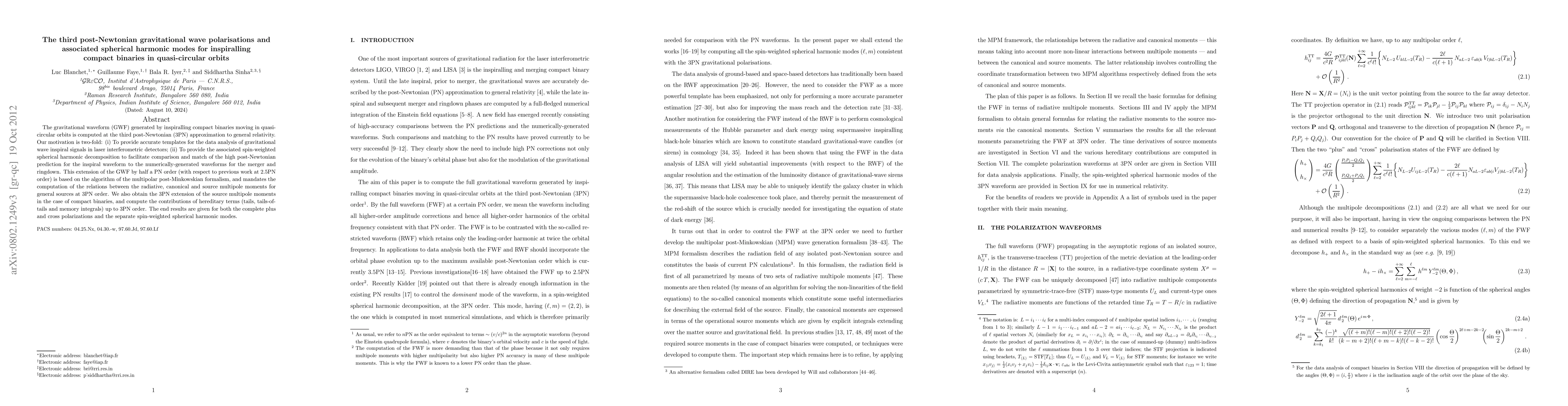 This paper computes gravitational waveforms for inspiralling compact binaries at the third post-Newtonian approximation, providing accurate templates for gravitational wave detection and facilitating comparison with numerically-generated merger and ringdown waveforms. It also includes the 3PN extension of spin-weighted spherical harmonic decompositions and hereditary terms contributions.