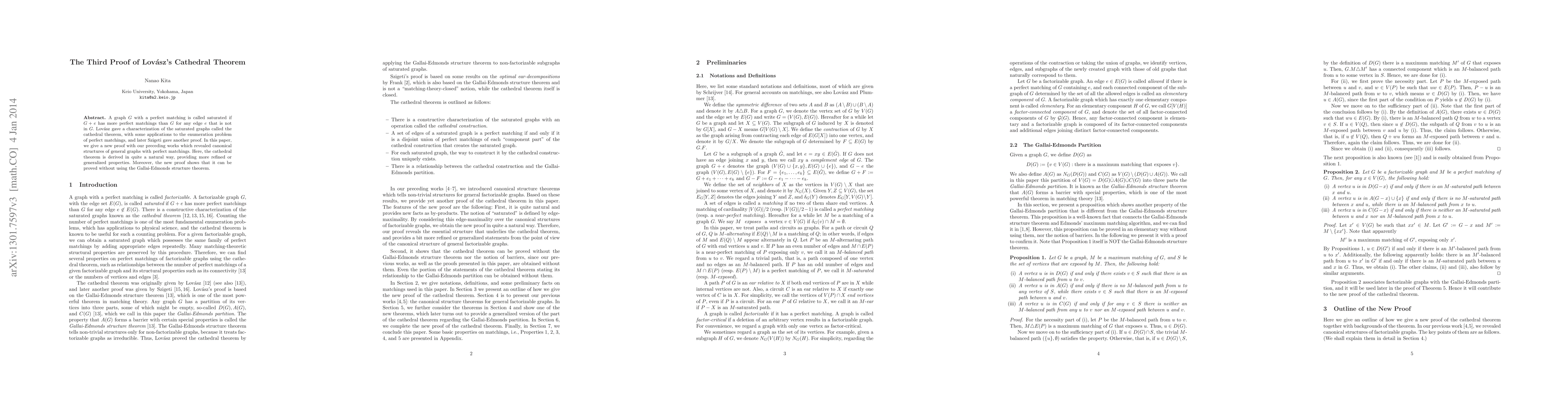 A graph $G$ with a perfect matching is called saturated if $G+e$ has more perfect matchings than $G$ for any edge $e$ that is not in $G$. Lov\'asz gave a characterization of the saturated graphs called the cathedral theorem, with some applications to the enumeration problem of perfect matchings, and later Szigeti gave another proof. In this paper, we give a new proof with our preceding works which revealed canonical structures of general graphs with perfect matchings. Here, the cathedral theorem is derived in quite a natural way, providing more refined or generalized properties. Moreover, the new proof shows that it can be proved without using the Gallai-Edmonds structure theorem.