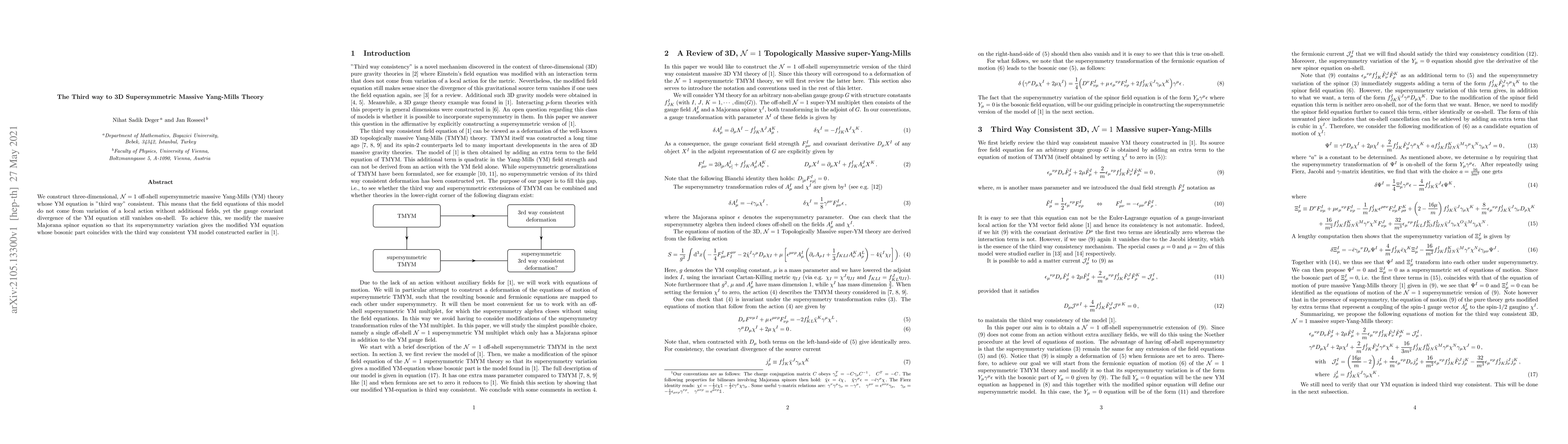 Researchers developed a new 3D supersymmetric massive Yang-Mills theory that is 'third way' consistent, meaning its field equations don't come from varying an action without extra fields, yet still vanish on-shell.