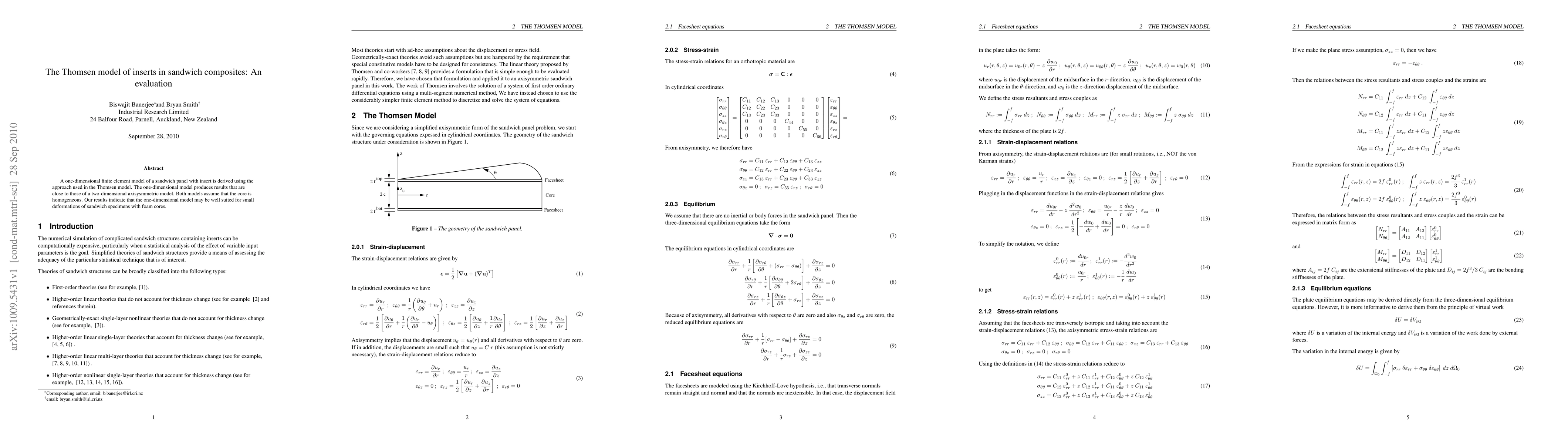 A simplified 1D model of sandwich composites is evaluated for its accuracy in predicting core behavior under small deformations. The one-dimensional model shows promise for foam-core specimens.