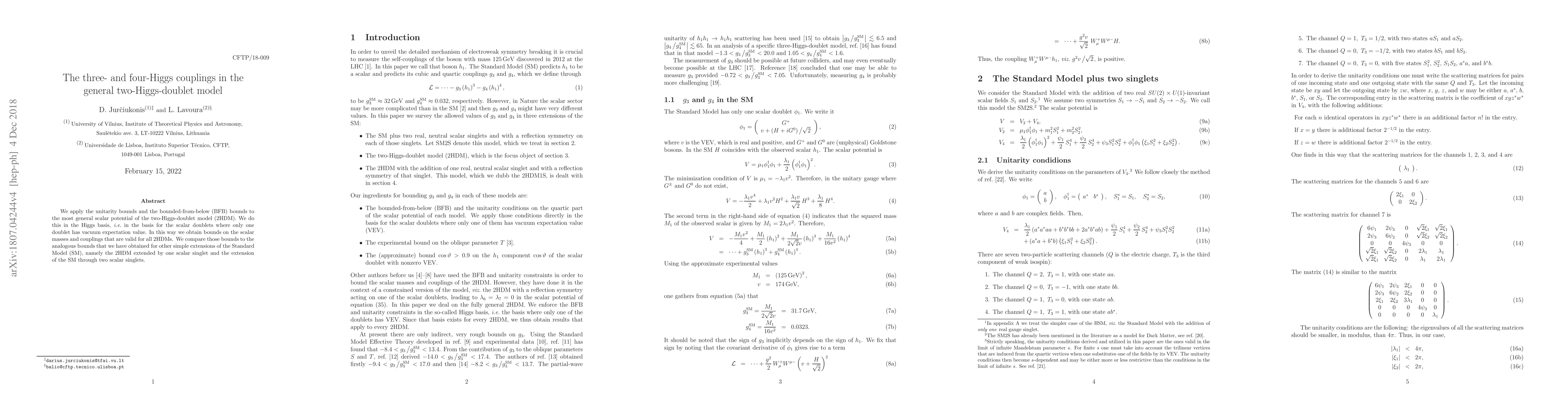 This paper investigates the unitarity and bounded-from-below bounds on the three- and four-Higgs couplings in the general two-Higgs-doublet model (2HDM) in the Higgs basis, establishing constraints on scalar masses and couplings. It also compares these results with analogous bounds from other Standard Model extensions involving scalar singlets.