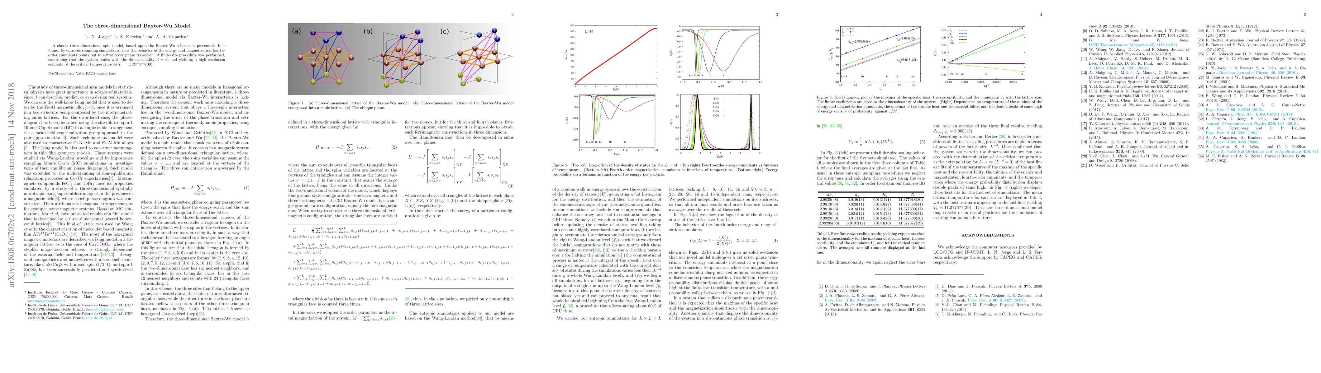 A 3D spin model based on the Baxter-Wu scheme exhibits a first-order phase transition with a critical temperature of Tc = 11.377577(39), confirmed through entropic sampling simulations and finite-size analysis.