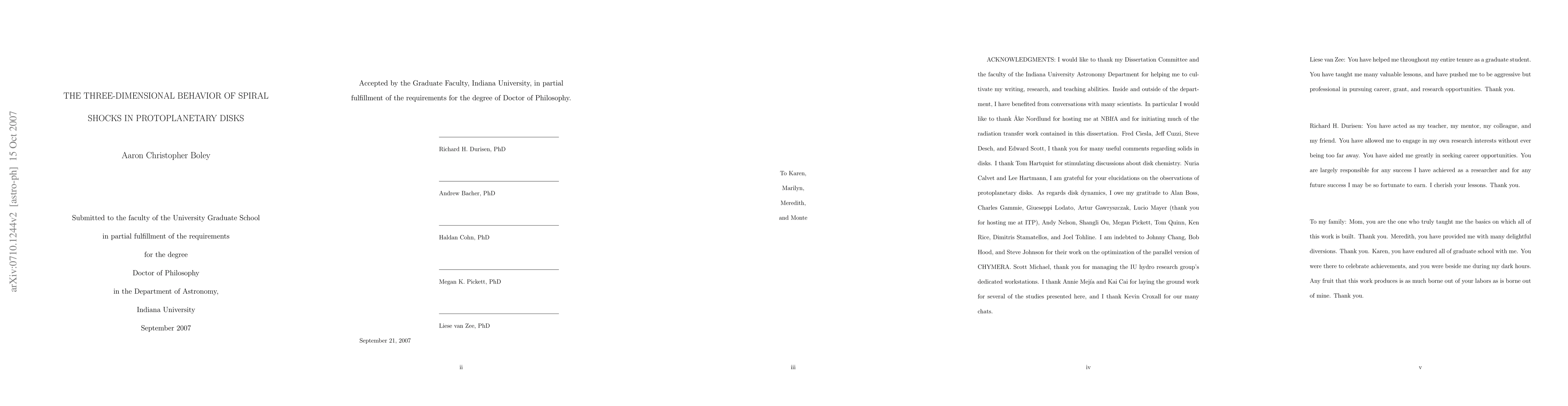 This research investigates the three-dimensional behavior of spiral shocks in protoplanetary disks, exploring gravitational instabilities and their role in gas giant formation via disk instability. It develops theoretical and numerical methods to study shock bores, disk cooling mechanisms, and the potential link between spiral shocks and chondrule formation.