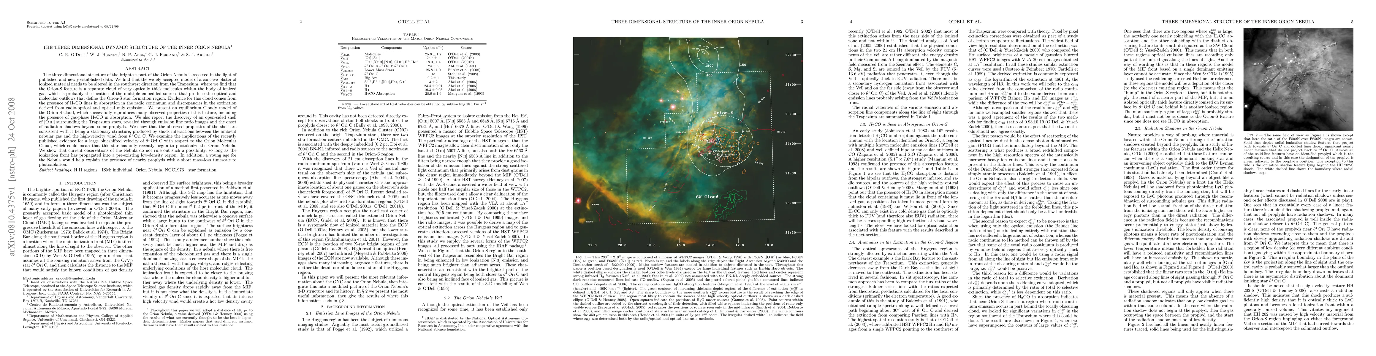 This paper reassesses the three-dimensional structure of the Orion Nebula, revealing a separate, optically thick molecular cloud in the southwest region, likely the source of outflows defining the Orion-S star formation region. Additionally, it discovers an open-sided shell of [O III] surrounding the Trapezium stars, suggesting it is a stationary structure formed by shock interactions with the high-velocity wind from theta^1 Ori C.