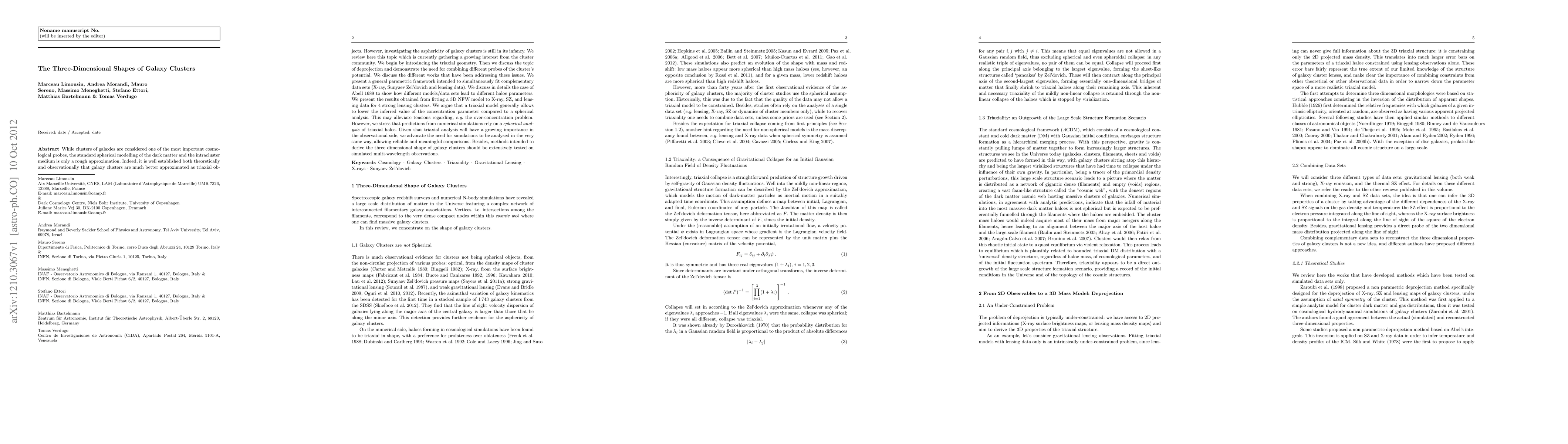 While clusters of galaxies are considered one of the most important cosmological probes, the standard spherical modelling of the dark matter and the intracluster medium is only a rough approximation. Indeed, it is well established both theoretically and observationally that galaxy clusters are much better approximated as triaxial objects. However, investigating the asphericity of galaxy clusters is still in its infancy. We review here this topic which is currently gathering a growing interest from the cluster community. We begin by introducing the triaxial geometry. Then we discuss the topic of deprojection and demonstrate the need for combining different probes of the cluster's potential. We discuss the different works that have been addressing these issues. We present a general parametric framework intended to simultaneously fit complementary data sets (X-ray, Sunyaev Zel'dovich and lensing data). We discuss in details the case of Abell 1689 to show how different models/data sets lead to different haloe parameters. We present the results obtained from fitting a 3D NFW model to X-ray, SZ, and lensing data for 4 strong lensing clusters. We argue that a triaxial model generally allows to lower the inferred value of the concentration parameter compared to a spherical analysis. This may alleviate tensions regarding, e.g. the over-concentration problem. However, we stress that predictions from numerical simulations rely on a spherical analysis of triaxial halos. Given that triaxial analysis will have a growing importance in the observational side, we advocate the need for simulations to be analysed in the very same way, allowing reliable and meaningful comparisons. Besides, methods intended to derive the three dimensional shape of galaxy clusters should be extensively tested on simulated multi-wavelength observations.