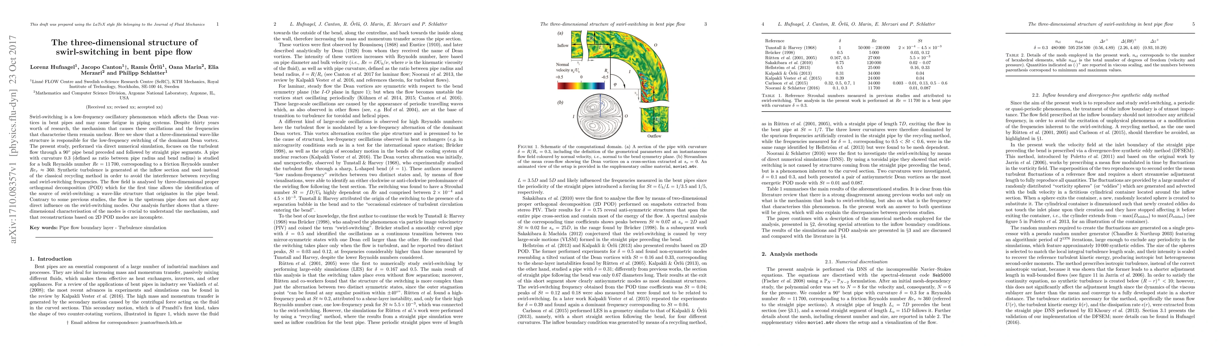 This paper identifies a three-dimensional wave-like structure in the pipe bend as the mechanism behind the low-frequency swirl-switching phenomenon in turbulent flow through a 90° pipe bend. Using direct numerical simulation and 3D proper orthogonal decomposition, the study reveals that upstream flow does not directly influence the swirl-switching modes, emphasizing the importance of a three-dimensional approach for accurate analysis.