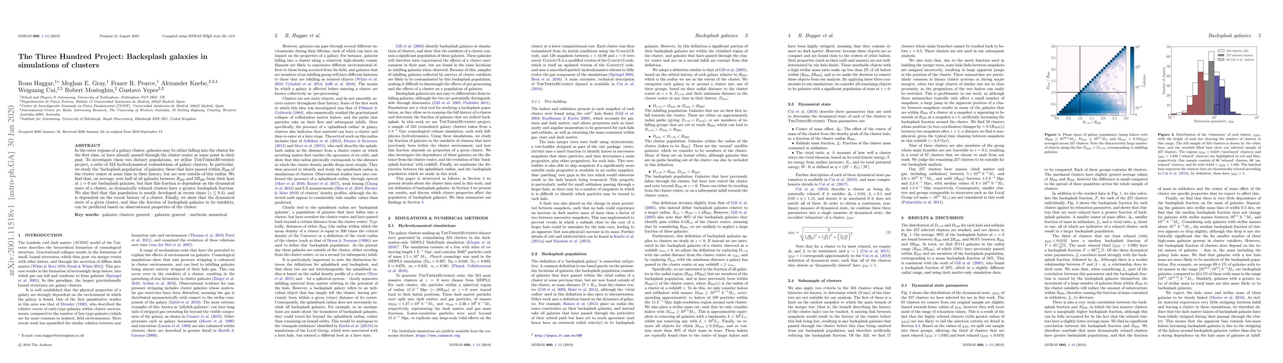 In the outer regions of a galaxy cluster, galaxies may be either falling into the cluster for the first time, or have already passed through the cluster centre at some point in their past. To investigate these two distinct populations, we utilise TheThreeHundred project, a suite of 324 hydrodynamical resimulations of galaxy clusters. In particular, we study the 'backsplash population' of galaxies; those that have passed within $R_{200}$ of the cluster centre at some time in their history, but are now outside of this radius. We find that, on average, over half of all galaxies between $R_{200}$ and $2R_{200}$ from their host at $z=0$ are backsplash galaxies, but that this fraction is dependent on the dynamical state of a cluster, as dynamically relaxed clusters have a greater backsplash fraction. We also find that this population is mostly developed at recent times ($z\leq0.4$), and is dependent on the recent history of a cluster. Finally, we show that the dynamical state of a given cluster, and thus the fraction of backsplash galaxies in its outskirts, can be predicted based on observational properties of the cluster.