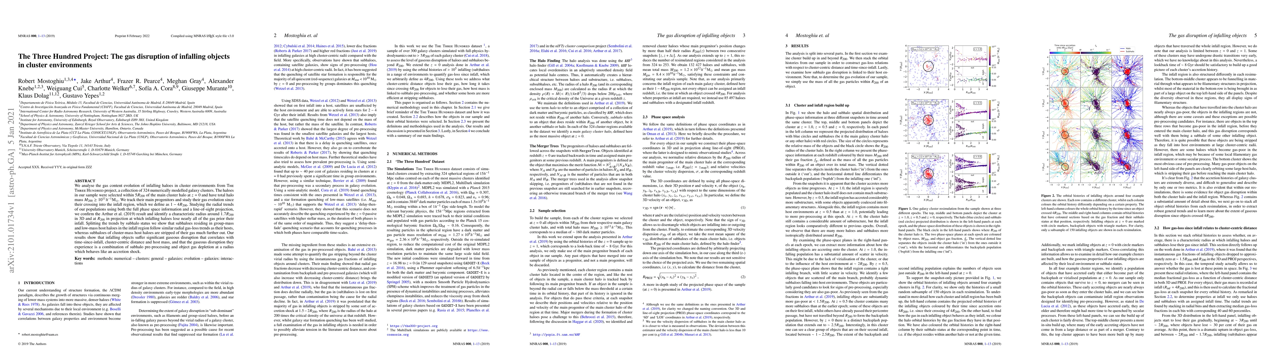 The Three Hundred Project investigates gas content evolution in infalling galaxy haloes in cluster environments, revealing significant gas disruption at a characteristic radius of $1.7R_{200}$ before infall. Subhaloes in group-mass hosts follow similar gas-loss trends as their hosts, while subhaloes in cluster-mass hosts experience gas stripping much further out.