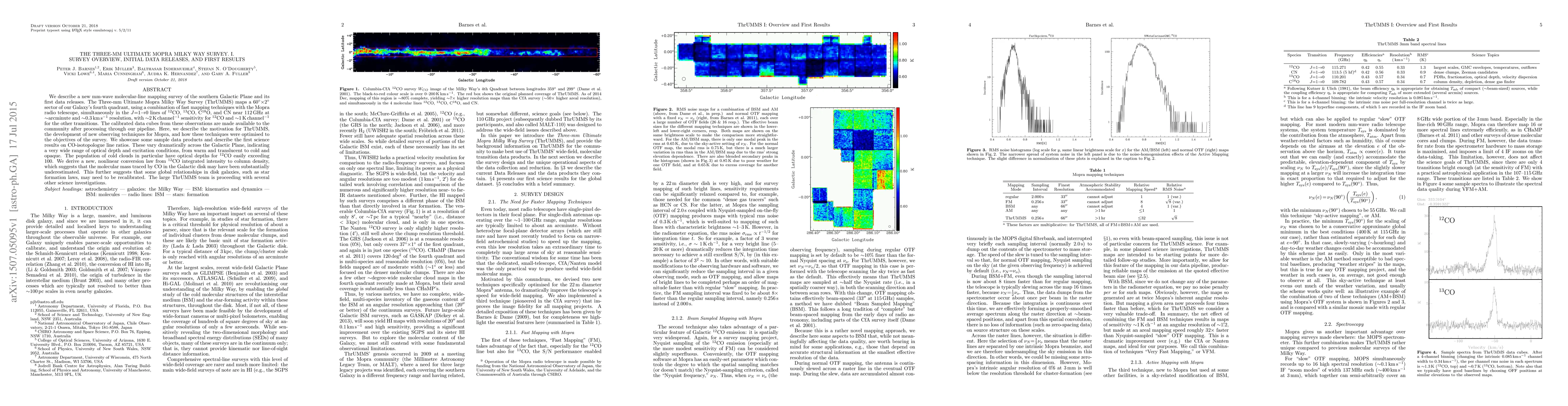 The ThrUMMS survey employs the Mopra telescope to map a 60°x2° sector of the southern Galactic Plane in CO isotopologue lines, revealing significant variations in optical depth and excitation conditions. Initial results suggest that the molecular mass traced by CO may be underestimated, indicating a need to recalibrate global relationships in disk galaxies, such as star formation laws.