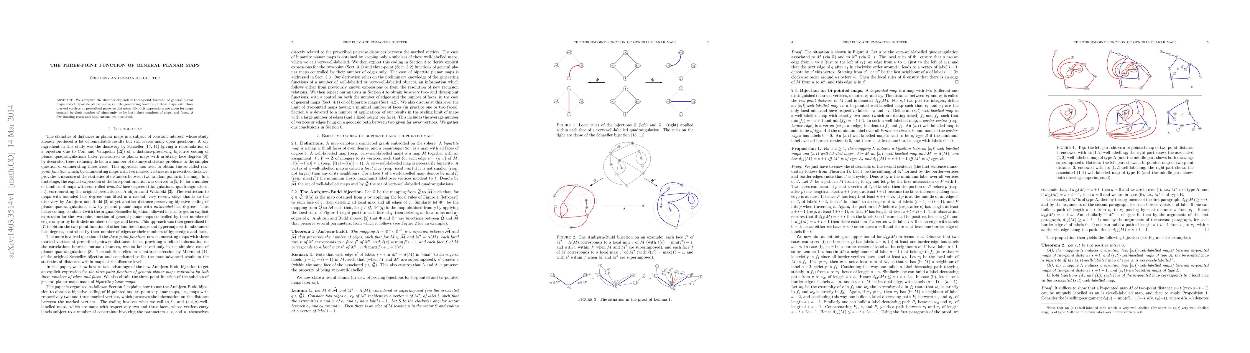 This paper computes the three-point function for general and bipartite planar maps, providing explicit expressions based on edge and face counts, and discusses applications and limiting cases.