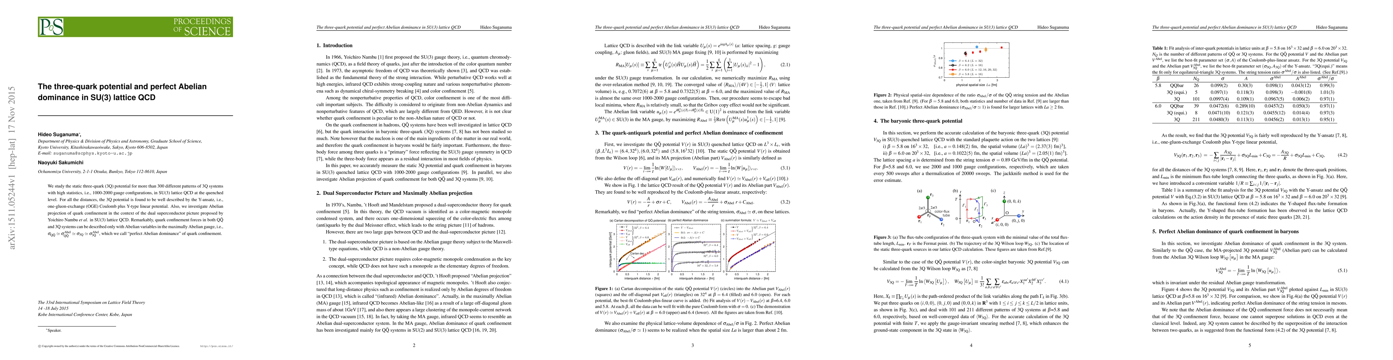 We study the static three-quark (3Q) potential for more than 300 different patterns of 3Q systems with high statistics, i.e., 1000-2000 gauge configurations, in SU(3) lattice QCD at the quenched level. For all the distances, the 3Q potential is found to be well described by the Y-ansatz, i.e., one-gluon-exchange (OGE) Coulomb plus Y-type linear potential. Also, we investigate Abelian projection of quark confinement in the context of the dual superconductor picture proposed by Yoichiro~Nambu~{\it et al.} in SU(3) lattice QCD. Remarkably, quark confinement forces in both Q$\bar{\rm Q}$ and 3Q systems can be described only with Abelian variables in the maximally Abelian gauge, i.e., $\sigma_{\rm Q \bar Q} \simeq \sigma_{\rm Q \bar Q}^{\rm Abel} \simeq \sigma_{\rm 3Q} \simeq \sigma_{\rm 3Q}^{\rm Abel}$, which we call ``perfect Abelian dominance'' of quark confinement.