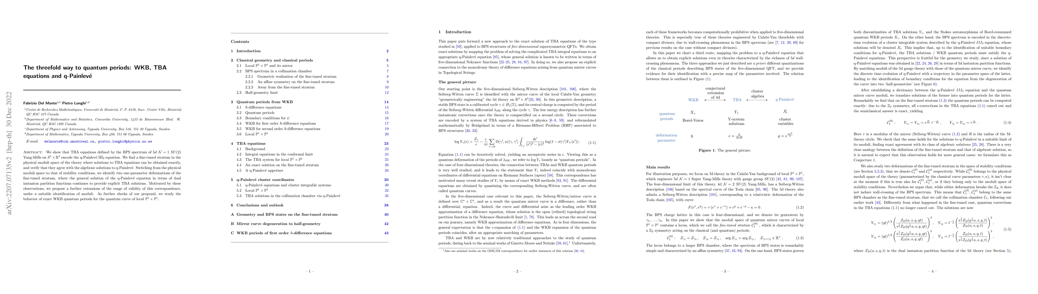 This paper explores the connection between TBA equations from $5d$ $\mathcal{N}=1$ $SU(2)$ Yang-Mills theory and the q-Painlevé III$_3$ equation, demonstrating that exact solutions to the former match algebraic solutions to the latter in a fine-tuned stratum. It proposes an extension of this correspondence and verifies it through the study of WKB quantum periods for the quantum curve of local $\mathbb{P}^1\times\mathbb{P}^1$.