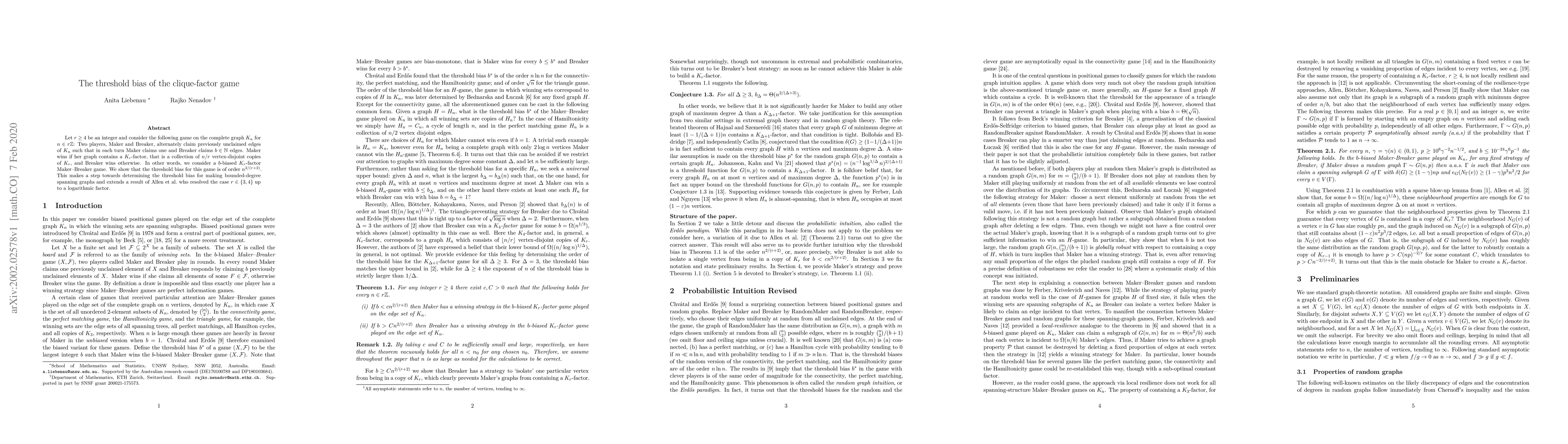 Let $r \ge 4$ be an integer and consider the following game on the complete graph $K_n$ for $n \in r \mathbb{Z}$: Two players, Maker and Breaker, alternately claim previously unclaimed edges of $K_n$ such that in each turn Maker claims one and Breaker claims $b \in \mathbb{N}$ edges. Maker wins if her graph contains a $K_r$-factor, that is a collection of $n/r$ vertex-disjoint copies of $K_r$, and Breaker wins otherwise. In other words, we consider a $b$-biased $K_r$-factor Maker-Breaker game. We show that the threshold bias for this game is of order $n^{2/(r+2)}$. This makes a step towards determining the threshold bias for making bounded-degree spanning graphs and extends a result of Allen et al.\ who resolved the case $r \in \{3,4\}$ up to a logarithmic factor.