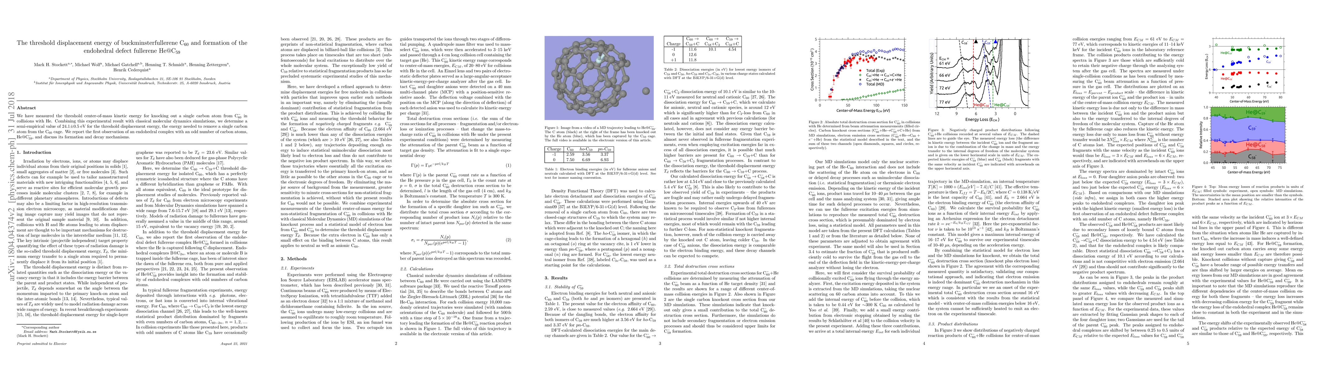 This study measures the threshold energy for removing a carbon atom from C$_{60}^-$, finding it to be 24.1±0.5 eV. It also reports the first endohedral defect fullerene, He@C$_{59}^-$, and explores its formation and decay mechanisms.
