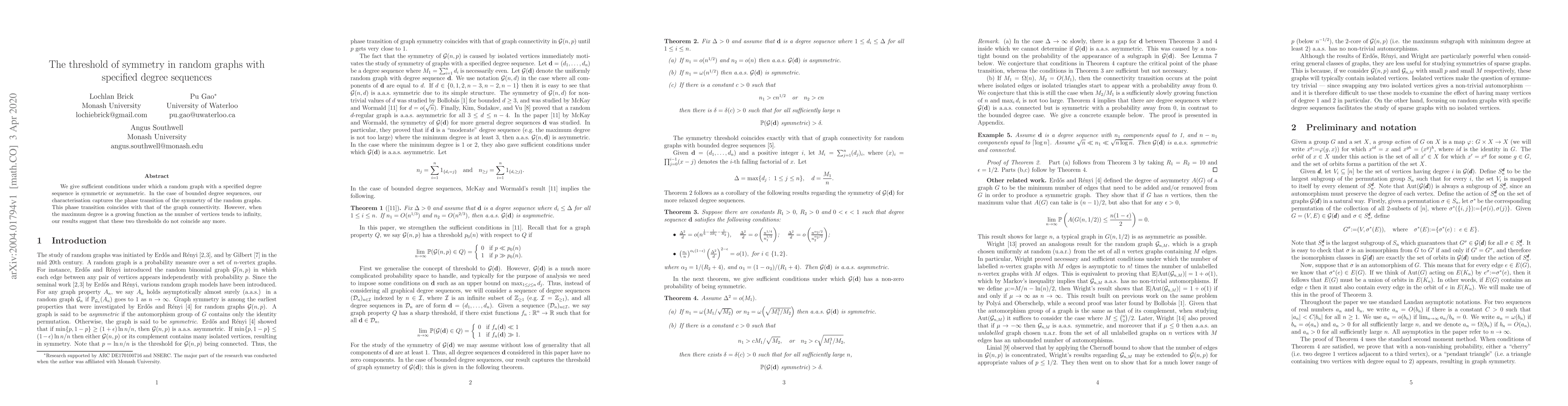 A study explores conditions for random graphs to be symmetric or asymmetric given a specified degree sequence, finding phase transitions that coincide with graph connectivity but not when maximum degree grows with increasing vertices.