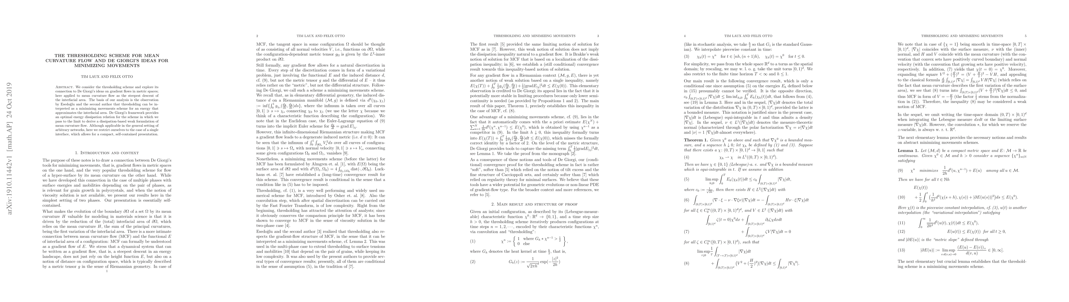 This paper explores the thresholding scheme in the context of mean curvature flow, linking it to De Giorgi's minimizing movements theory. It derives a dissipation-based weak formulation of mean curvature flow by passing to the limit, demonstrating the scheme's connection to gradient flows in metric spaces.