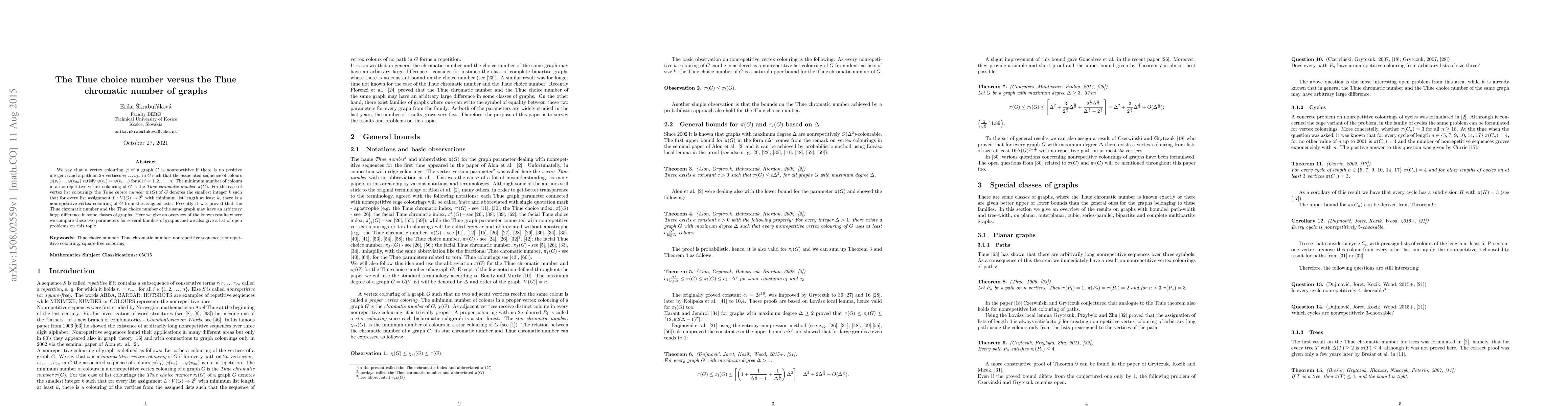 This paper investigates the difference between the Thue chromatic number and the Thue choice number of graphs, comparing these parameters for several families of graphs and highlighting open problems in the field.