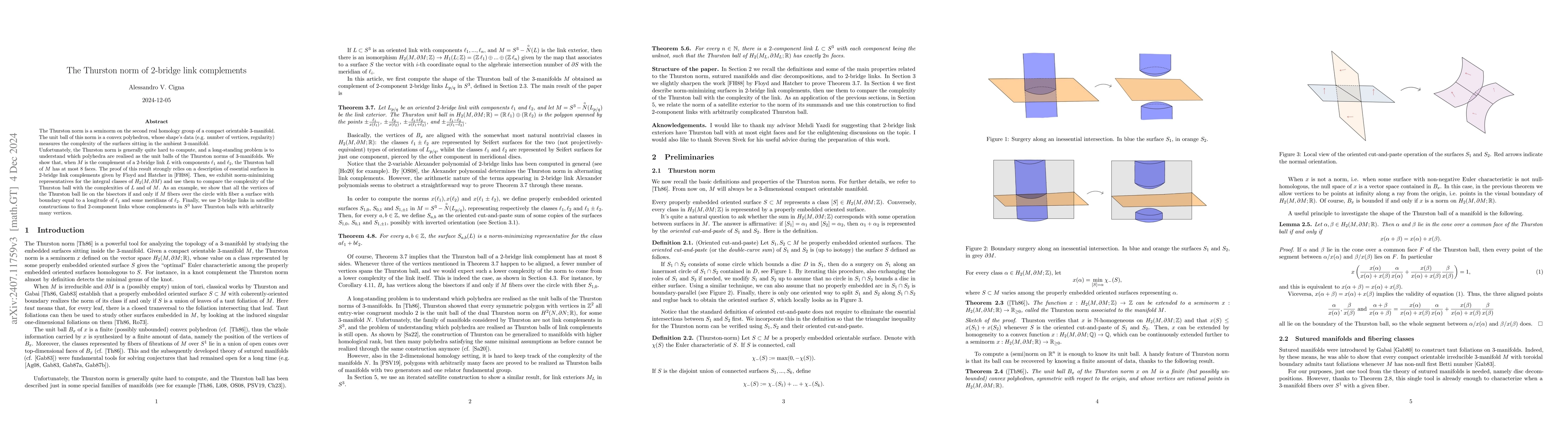 This paper investigates the Thurston norm of 3-manifolds, specifically the complements of 2-bridge links, proving that their Thurston norm unit balls have at most 8 faces. It also explores the relationship between the Thurston norm's complexity and the properties of the link and the manifold, concluding with examples illustrating the connection between vertex positioning in the Thurston ball and the manifold's fibration structure.