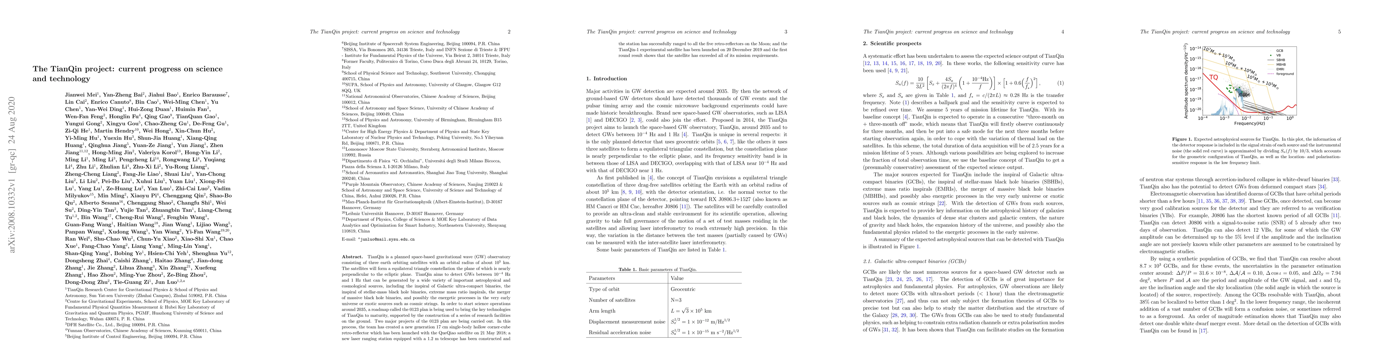 The TianQin project aims to detect gravitational waves from various astrophysical sources using a constellation of three satellites in orbit around Earth. The project has made significant progress, including the launch of two successful test satellites and a new laser ranging station.