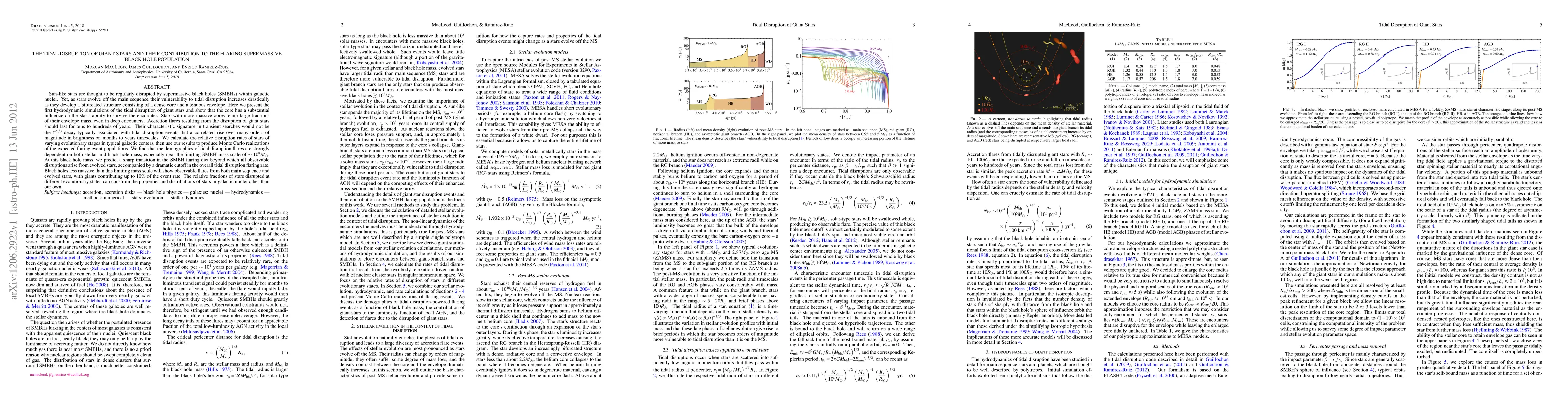 This paper presents hydrodynamic simulations of giant stars being tidally disrupted by supermassive black holes, showing that stars with more massive cores retain significant envelope mass. It predicts that flares from disrupted giant stars will have a distinct rise in brightness over months to years, differing from the typical $t^{-5/3}$ decay. The study finds that the disruption rate and flare demographics are strongly dependent on both stellar and black hole mass, predicting a sharp transition in flaring events beyond a black hole mass of $\sim 10^8 M_\odot$.