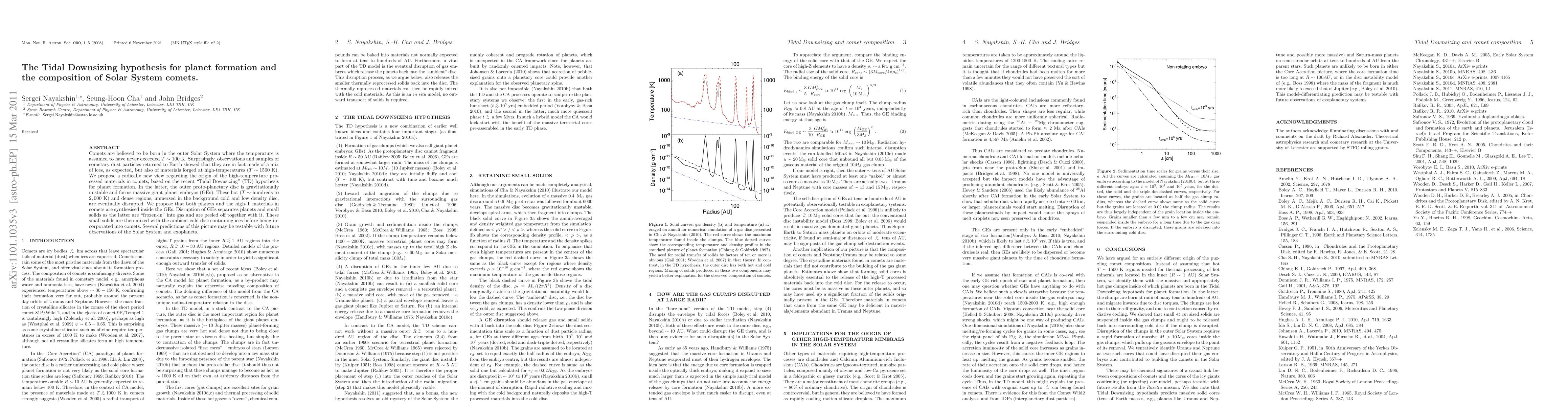 The paper proposes a new origin for high-temperature materials in comets based on the Tidal Downsizing hypothesis, suggesting that these materials originate from the disruption of massive giant planet embryos formed in the outer proto-planetary disc. This model predicts that small solids from these embryos mix with icy materials in the cold disc to form comets.
