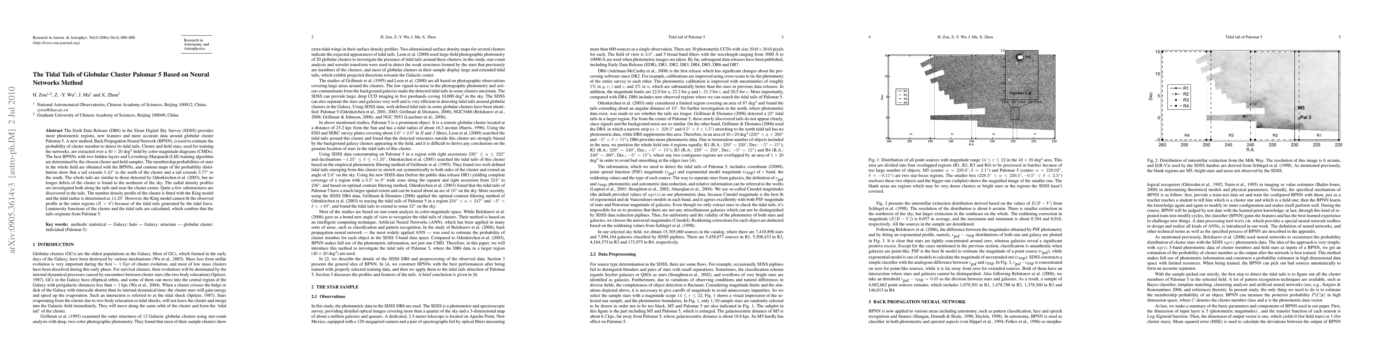 This study presents a novel application of BPNN to detect and analyze the tidal tails of globular clusters, providing a more precise and automated method compared to traditional techniques. The findings contribute to understanding the dynamics and evolution of Palomar 5 and similar globular clusters in the Milky Way.