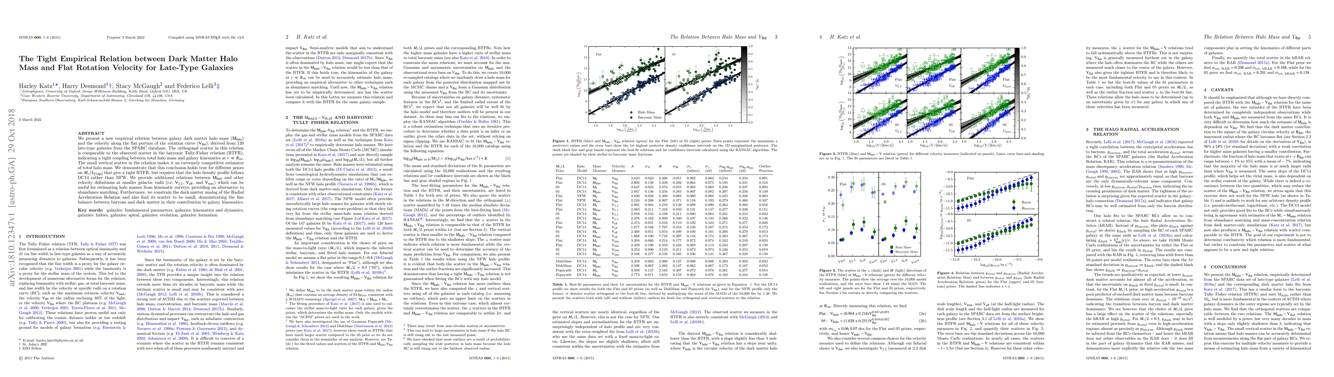 The research introduces a new empirical relation between Mhalo and Vflat, demonstrating its competitiveness with the BTFR, and extends the analysis to other velocity definitions and the dark matter analog of the RAR.