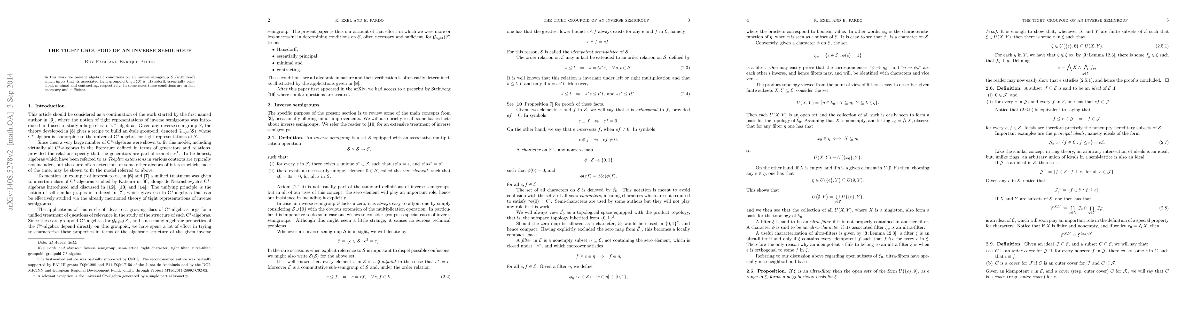 In this work we present algebraic conditions on an inverse semigroup S (with zero) which imply that its associated tight groupoid G_{tight)(S) is: Hausdorff, essentially principal, minimal and contracting, respectively. In some cases these conditions are in fact necessary and sufficient.