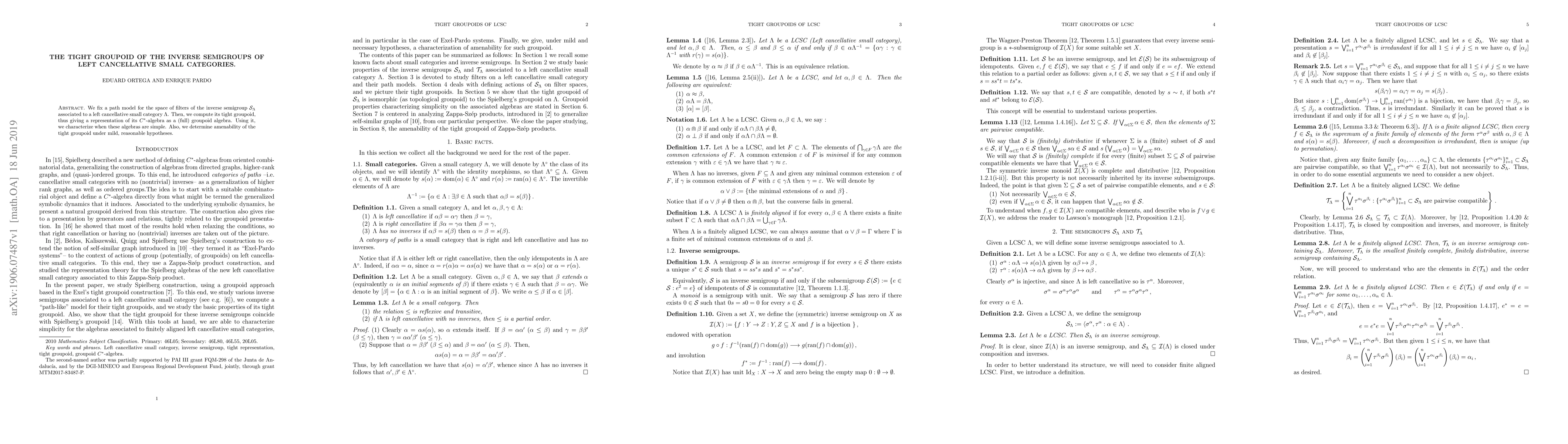 We fix a path model for the space of filters of the inverse semigroup $\mathcal{S}_\Lambda$ associated to a left cancellative small category $\Lambda$. Then, we compute its tight groupoid, thus giving a representation of its $C^*$-algebra as a (full) groupoid algebra. Using it, we characterize when these algebras are simple. Also, we determine amenability of the tight groupoid under mild, reasonable hypotheses.