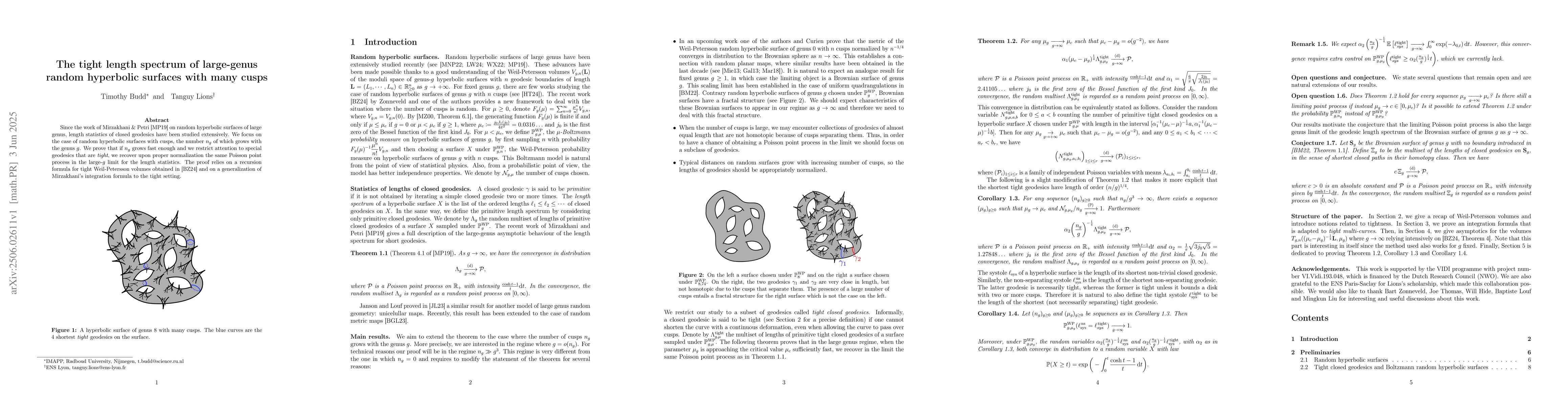 The paper introduces a generalization of Mirzakhani's integration formula to the tight setting, enabling the analysis of length statistics for random hyperbolic surfaces with many cusps.