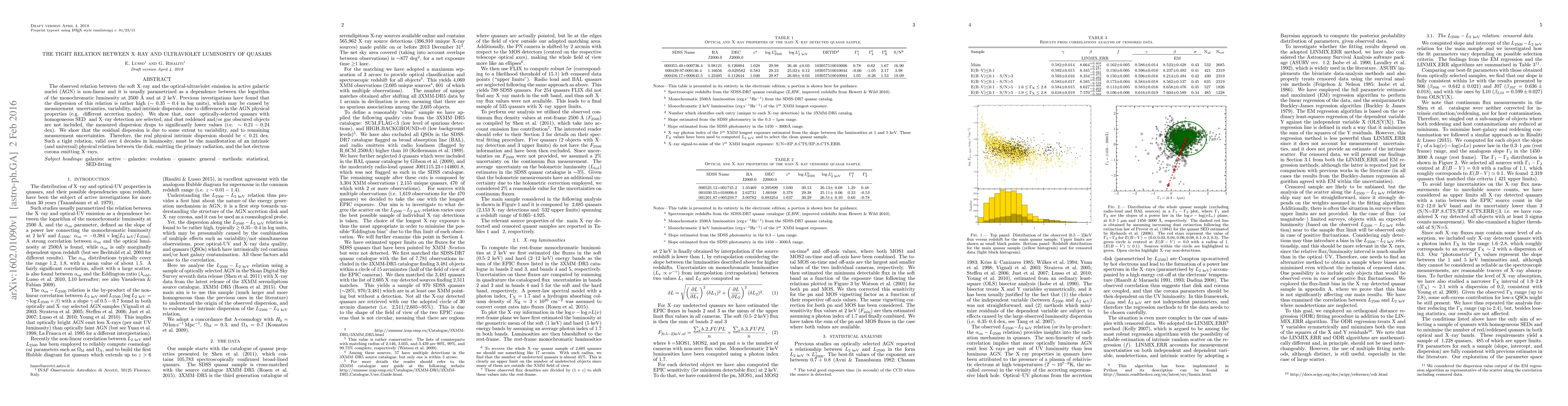 This paper investigates the non-linear relationship between X-ray and ultraviolet luminosity in quasars, finding a significant reduction in dispersion when considering only homogeneous quasars. The residual dispersion is attributed to variability and measurement uncertainties, suggesting an intrinsic physical connection between the X-ray corona and the ultraviolet emission disk.