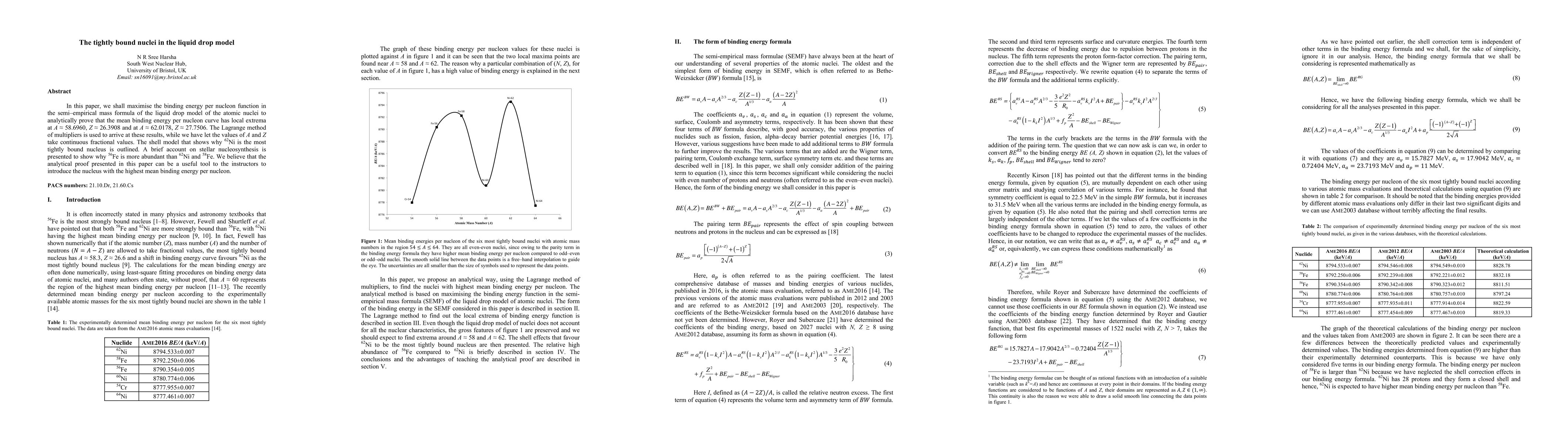 In this paper, we shall maximise the binding energy per nucleon function in the semi-empirical mass formula of the liquid drop model of the atomic nuclei to analytically prove that the mean binding energy per nucleon curve has local extrema at A = 58.6960, Z = 26.3908 and at A = 62.0178, Z = 27.7506. The Lagrange method of multipliers is used to arrive at these results, while we have let the values of A and Z take continuous fractional values. The shell model that shows why 62Ni is the most tightly bound nucleus is outlined. A brief account on stellar nucleosynthesis is presented to show why 56Fe is more abundant than 62Ni and 58Fe. We believe that the analytical proof presented in this paper can be a useful tool to the instructors to introduce the nucleus with the highest mean binding energy per nucleon.