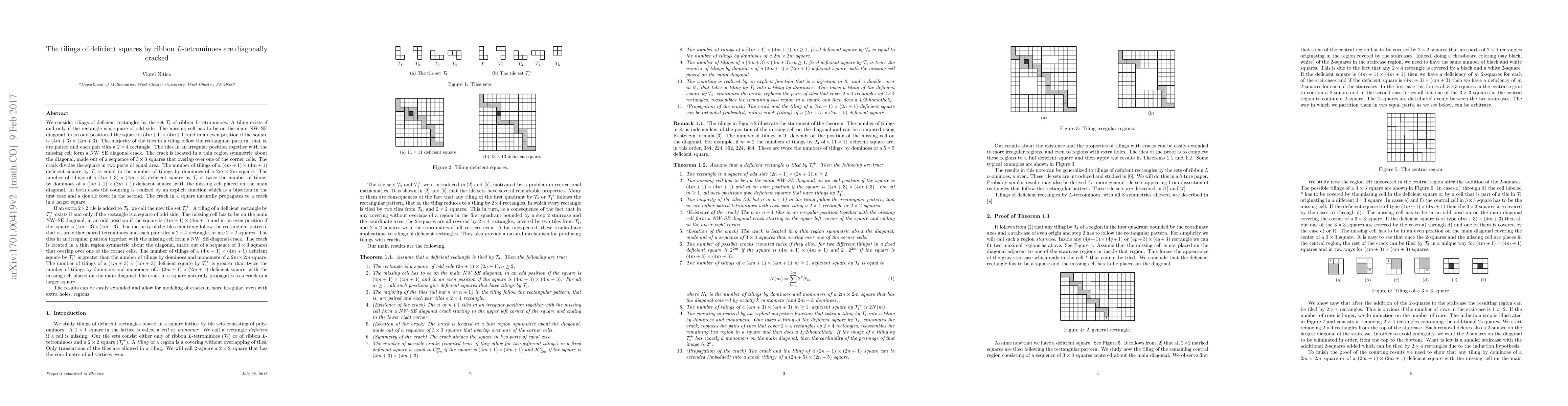 This paper explores tilings of deficient odd-sided squares using ribbon L-tetrominoes, revealing a diagonal crack in the tilings and establishing relationships between the number of such tilings and those of dominoes. Adding a $2\times 2$ tile results in similar diagonal cracking patterns.