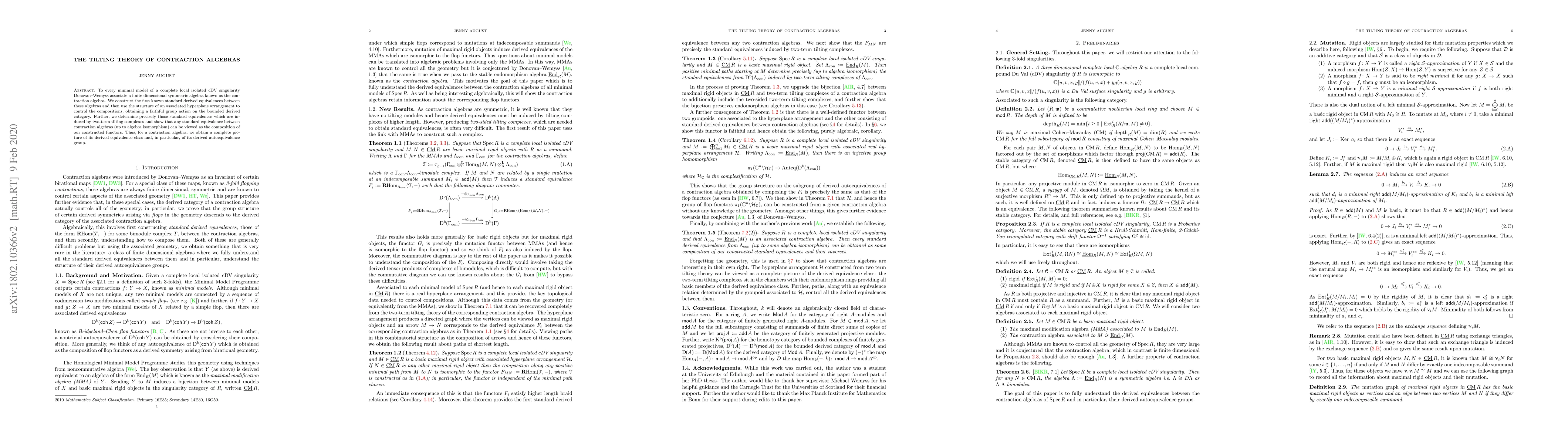 To every minimal model of a complete local isolated cDV singularity Donovan--Wemyss associate a finite dimensional symmetric algebra known as the contraction algebra. We construct the first known standard derived equivalences between these algebras and then use the structure of an associated hyperplane arrangement to control the compositions, obtaining a faithful group action on the bounded derived category. Further, we determine precisely those standard equivalences which are induced by two-term tilting complexes and show that any standard equivalence between contraction algebras (up to algebra isomorphism) can be viewed as the composition of our constructed functors. Thus, for a contraction algebra, we obtain a complete picture of its derived equivalence class and, in particular, of its derived autoequivalence group.